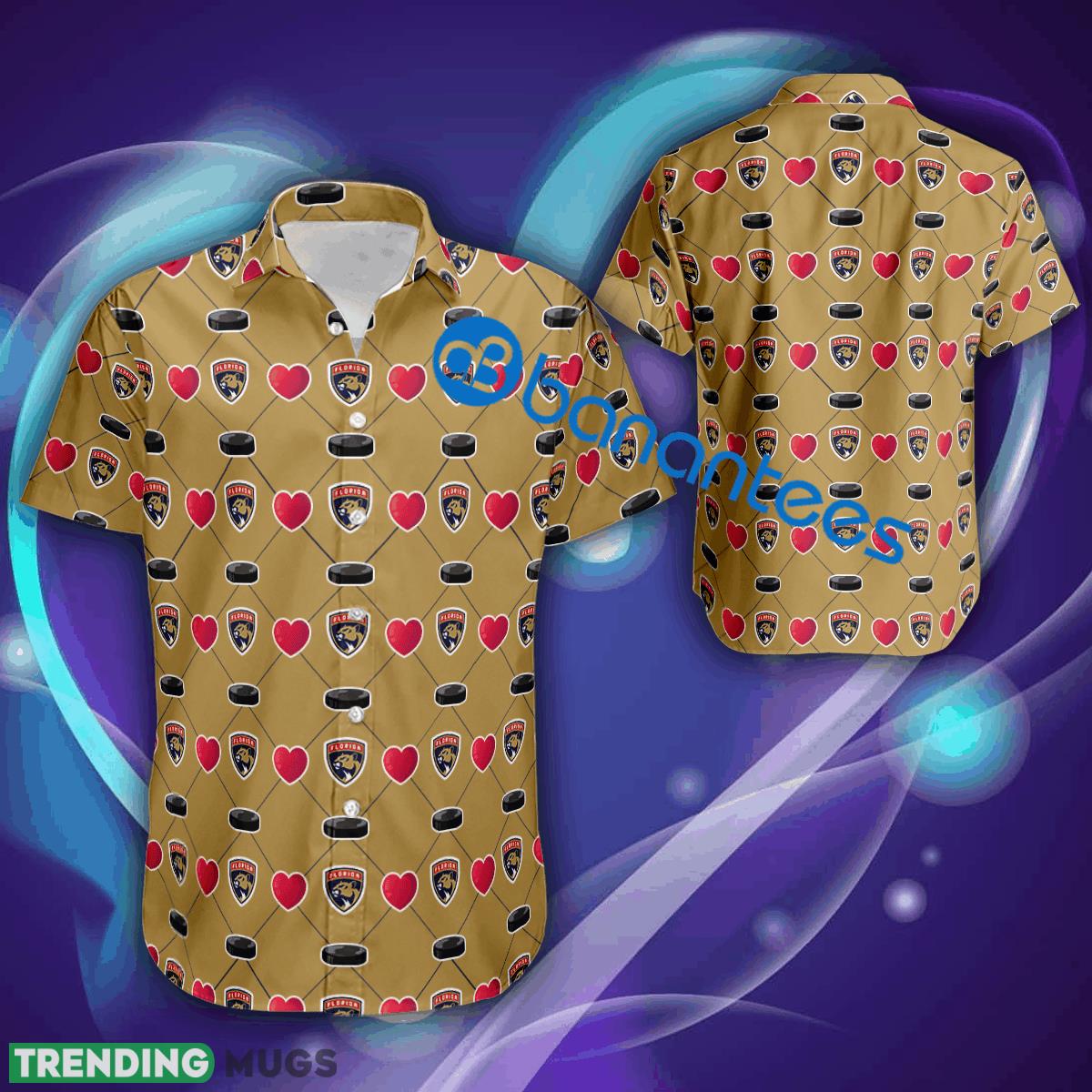 Designed with a unique heart pattern featuring the iconic Florida Panthers logo, this Hawaiian shirt is a must-have for any fan looking to stand out from the crowd. The vibrant colors and attention to detail make it a true statement piece.