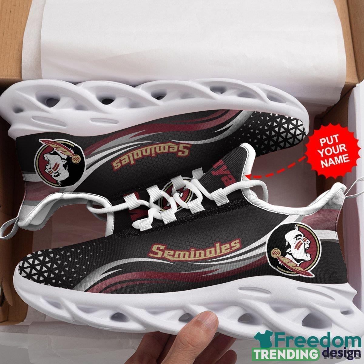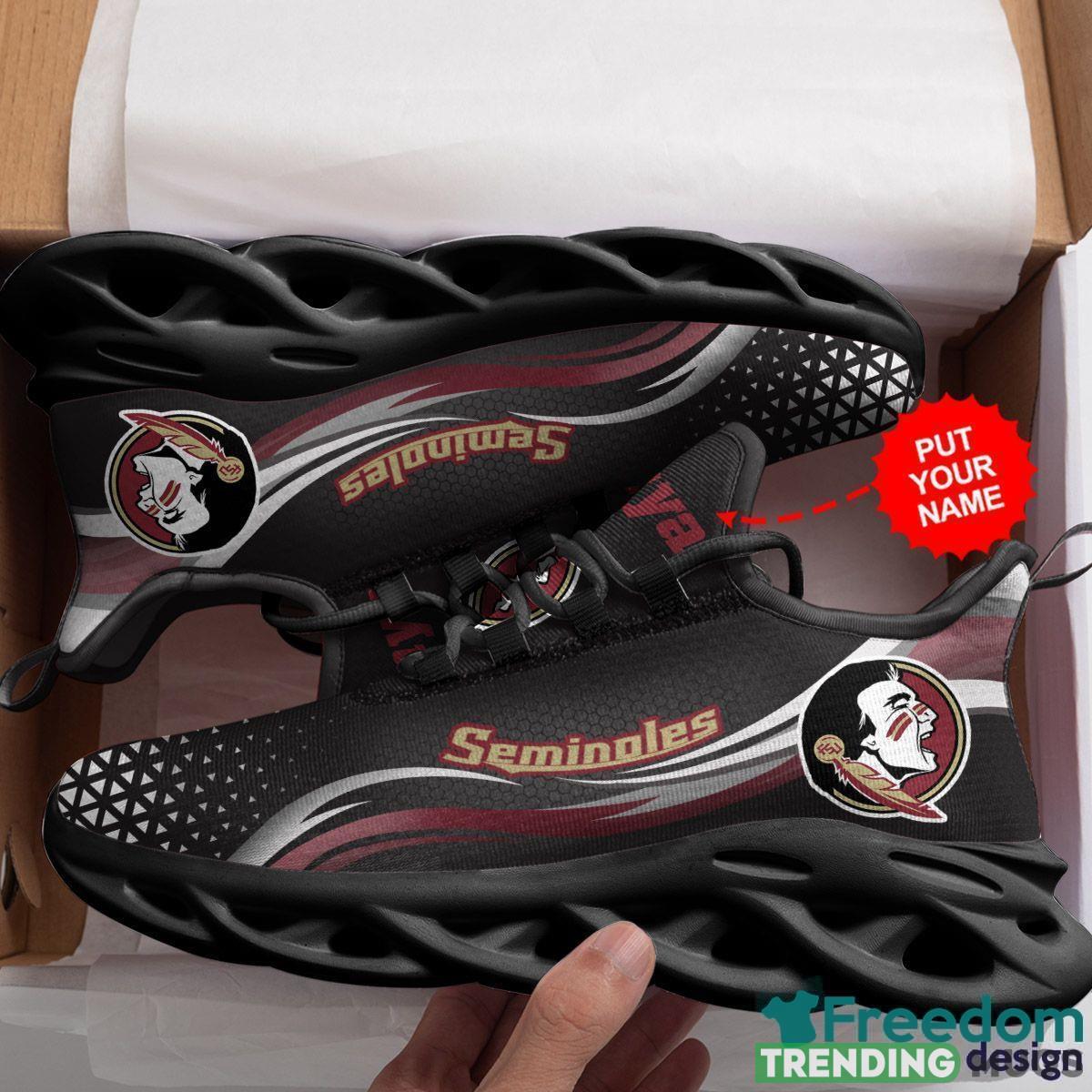 But that’s not all – these sneakers can be personalized with your name, making them even more special. Imagine proudly displaying your name alongside the prestigious Seminoles logo, showcasing your dedication to the team in a truly one-of-a-kind way.