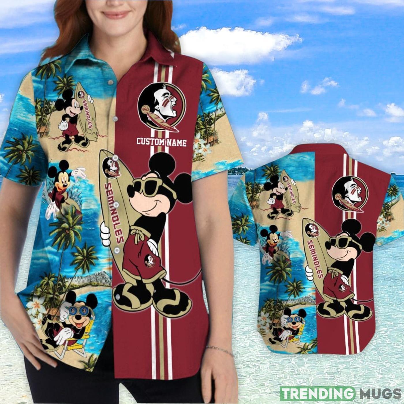 Florida State Seminoles Mickey Surfing Lover Custom Name Hawaiian Shirt Details: