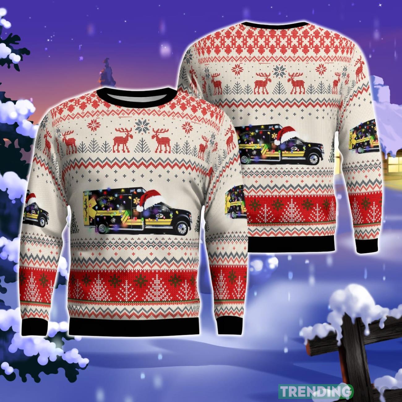 Whether you’re attending a holiday party, participating in an ugly sweater contest, or simply looking for a delightful addition to your Christmas wardrobe, our Floyd County EMS Christmas Ugly Sweater is the perfect choice. It’s not just a sweater; it’s a conversation starter and a way to show your support for our local heroes.
