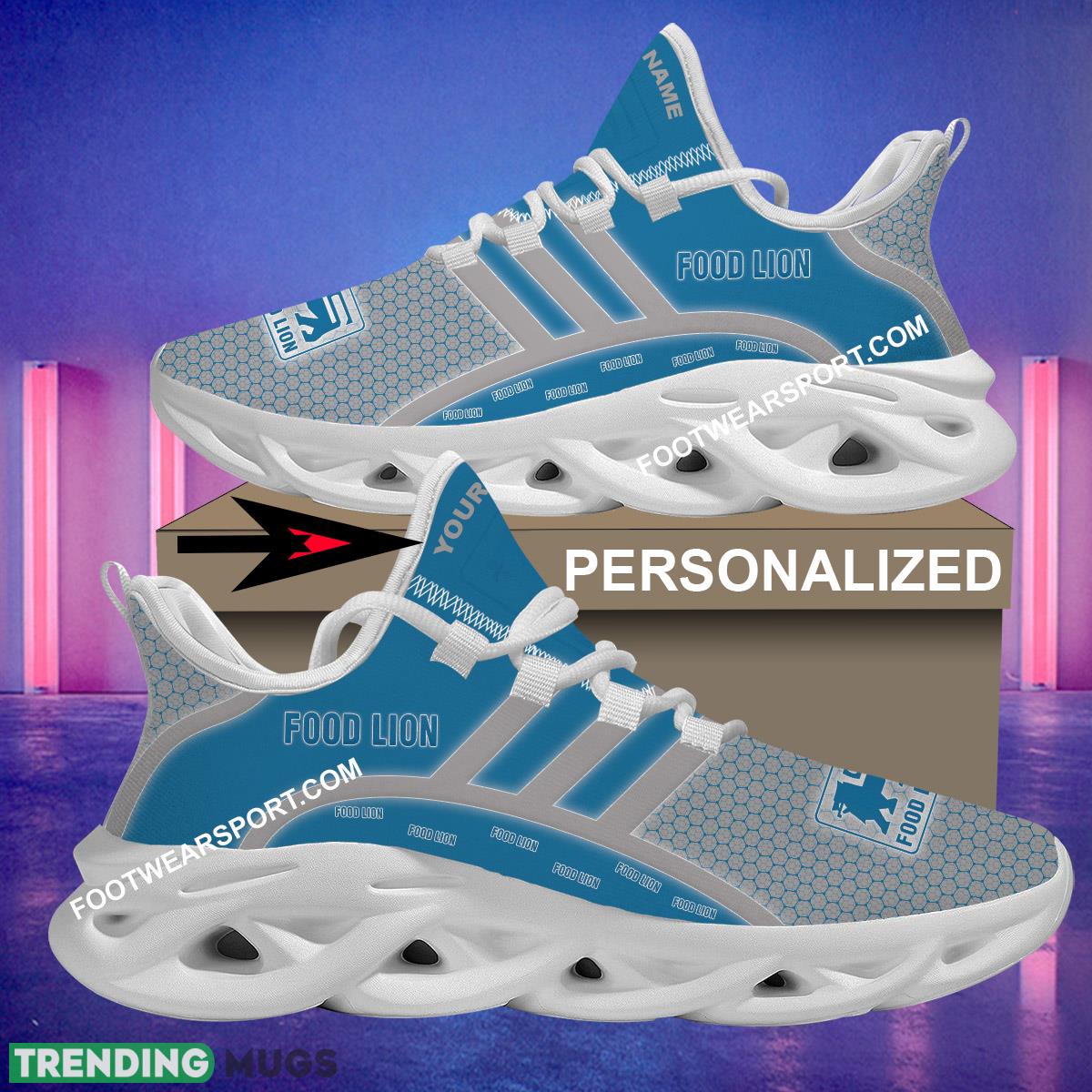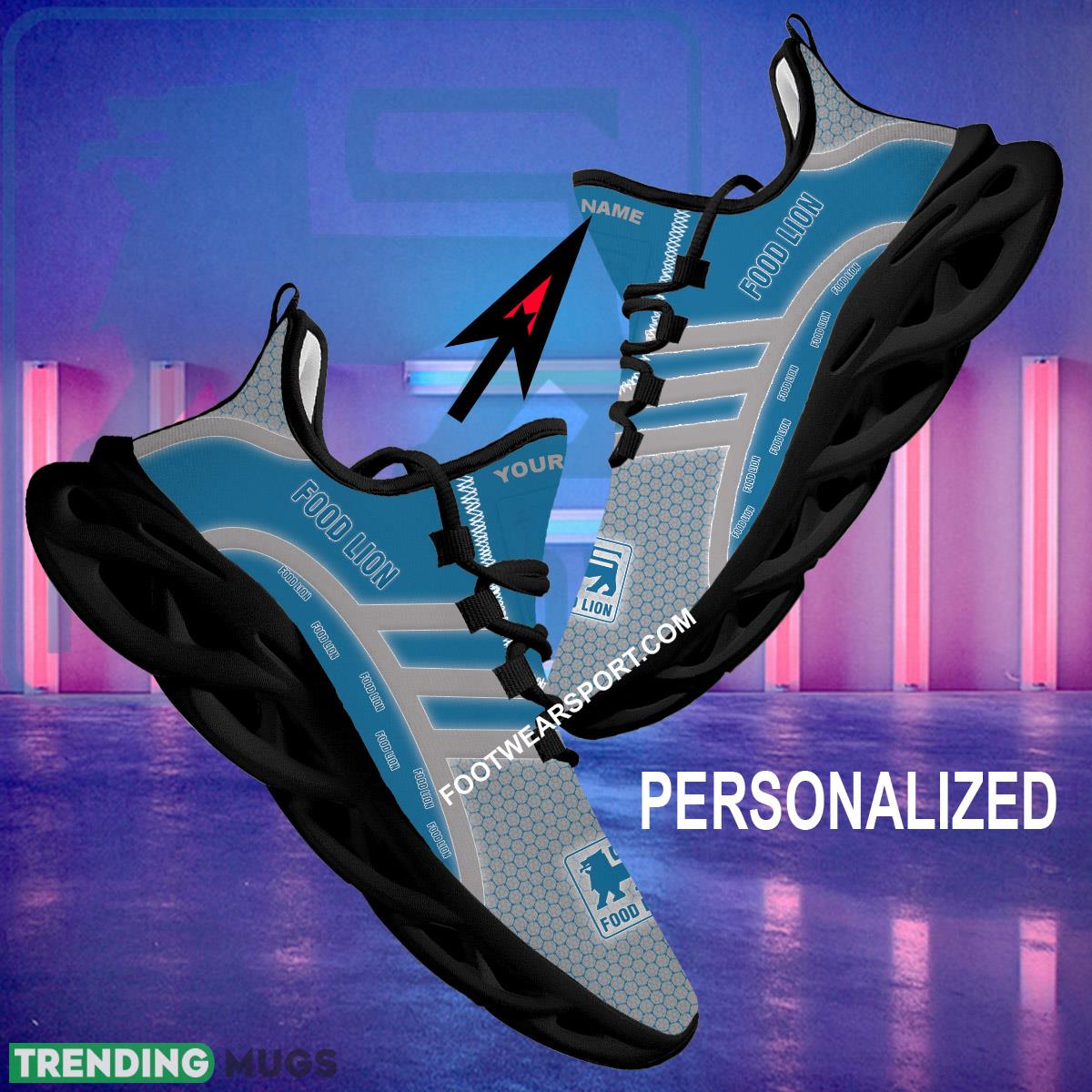 This Food Lion Max Soul Shoes Brand For Fans Gift Recognizable Running Sneaker Custom Name Max Soul Shoes is a breathable, lightweight, and comfortable casual outdoor shoe that has a unique design. It is made of a mesh fabric which makes it sweat absorbent and breathable, while the rubber bottom ensures traction, comfort, and durability. It is available in two colors: black or white sole. There are two styles of shoelace holes so you can choose your preference.