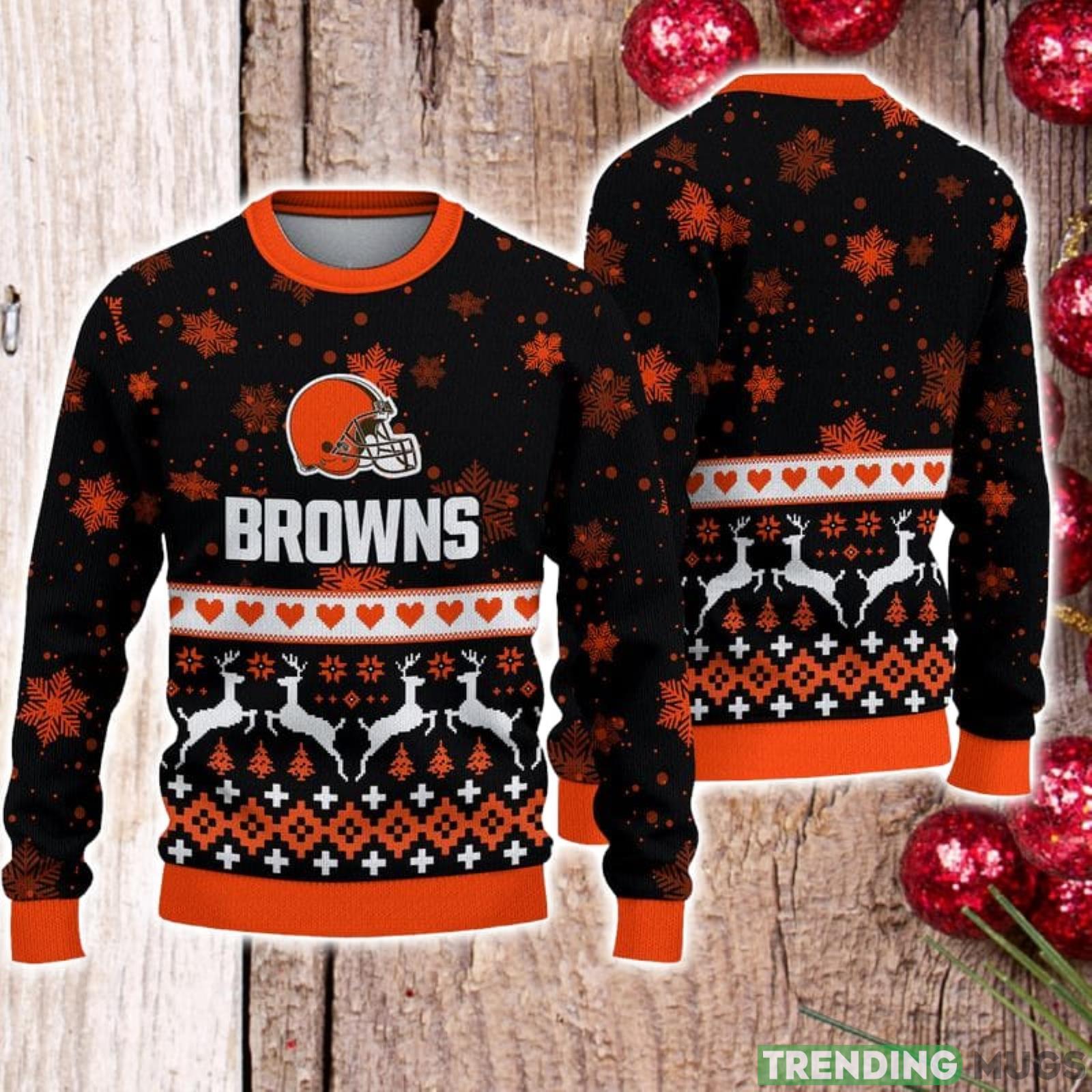For Fans Cleveland Browns Xmax Gift Snow Reindeer Pattern Ugly Christmas Sweater 3D Sweater