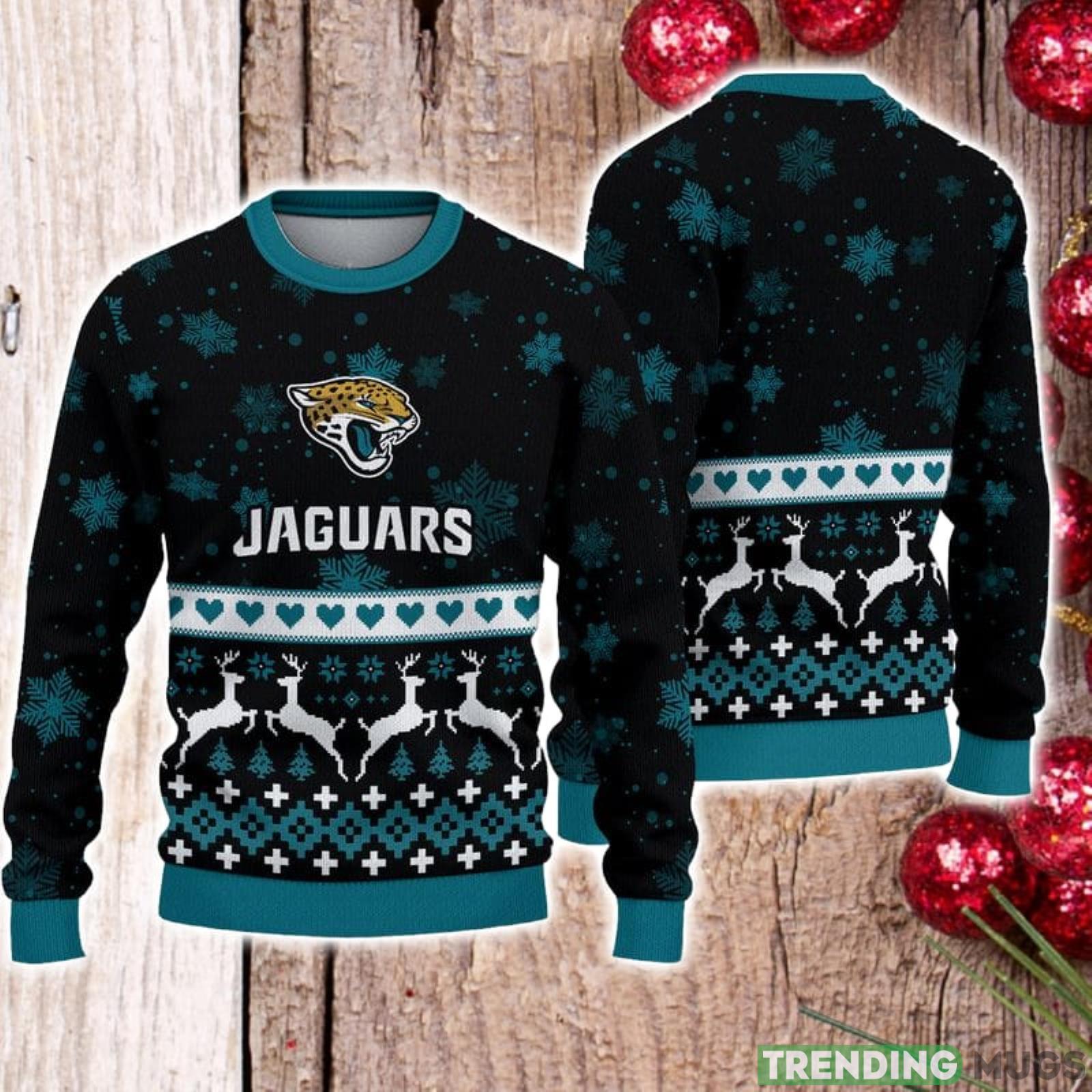For Fans Jacksonville Jaguars Xmax Gift Snow Reindeer Pattern Ugly Christmas Sweater Product Photo 1