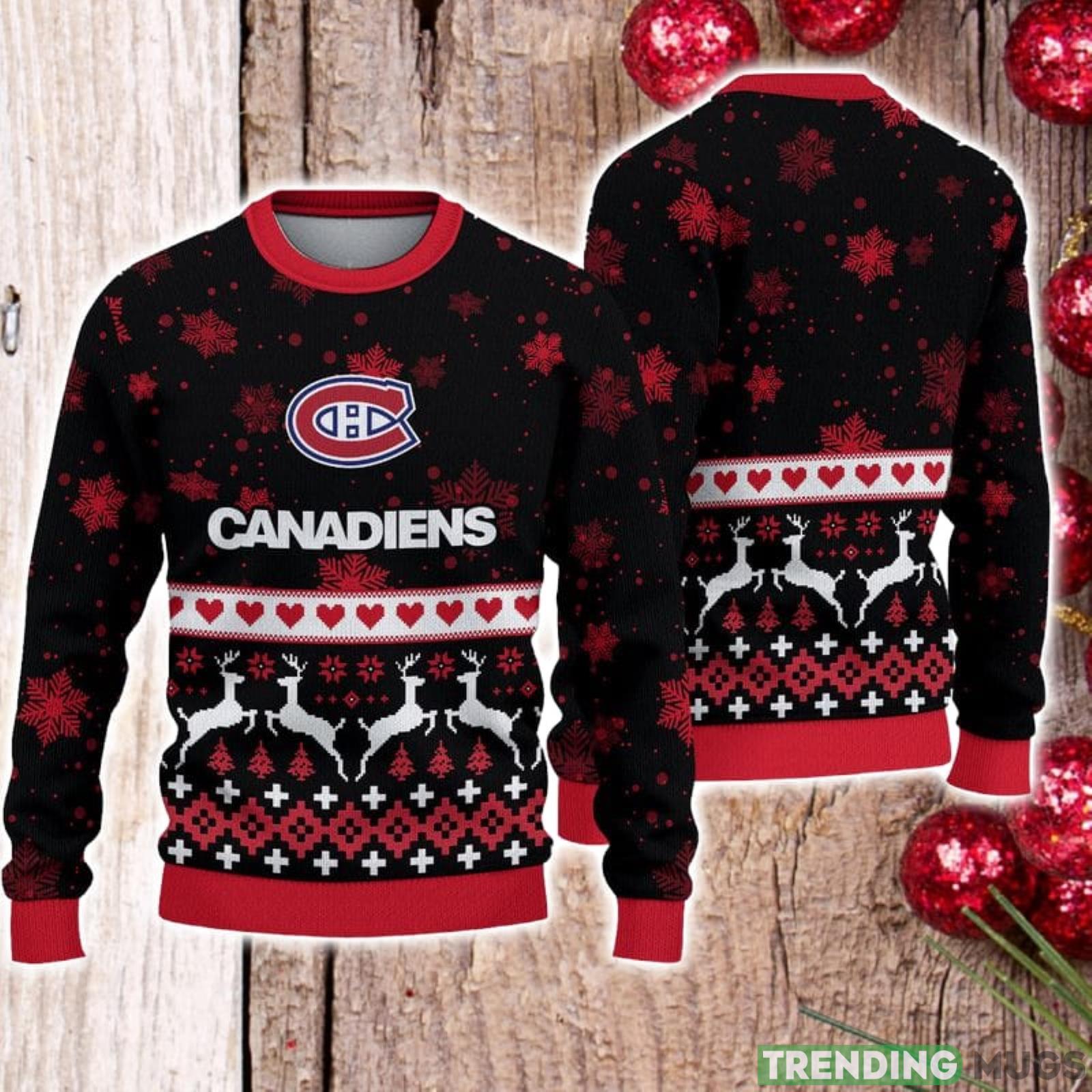 For Fans Montreal Canadiens Xmax Gift Snow Reindeer Pattern Ugly Christmas Sweater Informations: