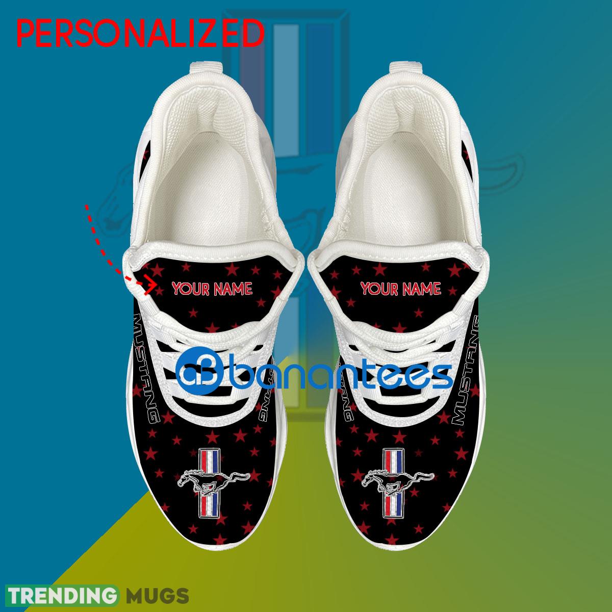 This Ford Mustang Car Racing Running Sneaker Runway Custom Name Gift Max Soul Shoes USA Flag Star New For Fans is a breathable, lightweight, and comfortable casual outdoor shoe that has a unique design. It is made of a mesh fabric which makes it sweat absorbent and breathable, while the rubber bottom ensures traction, comfort, and durability. It is available in two colors: black or white sole. There are two styles of shoelace holes so you can choose your preference.