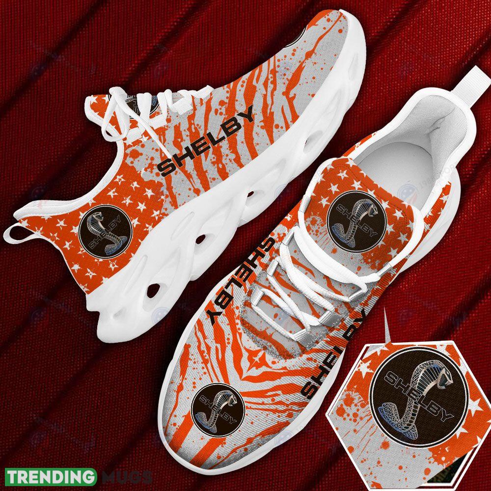 This Ford Shelby Car And Motorcycle Racing Running Shoes Orange Max Soul Sneakers For Men Women is a breathable, lightweight, and comfortable casual outdoor shoe that has a unique design. It is made of a mesh fabric which makes it sweat absorbent and breathable, while the rubber bottom ensures traction, comfort, and durability. It is available in two colors: black or white sole. There are two styles of shoelace holes so you can choose your preference.