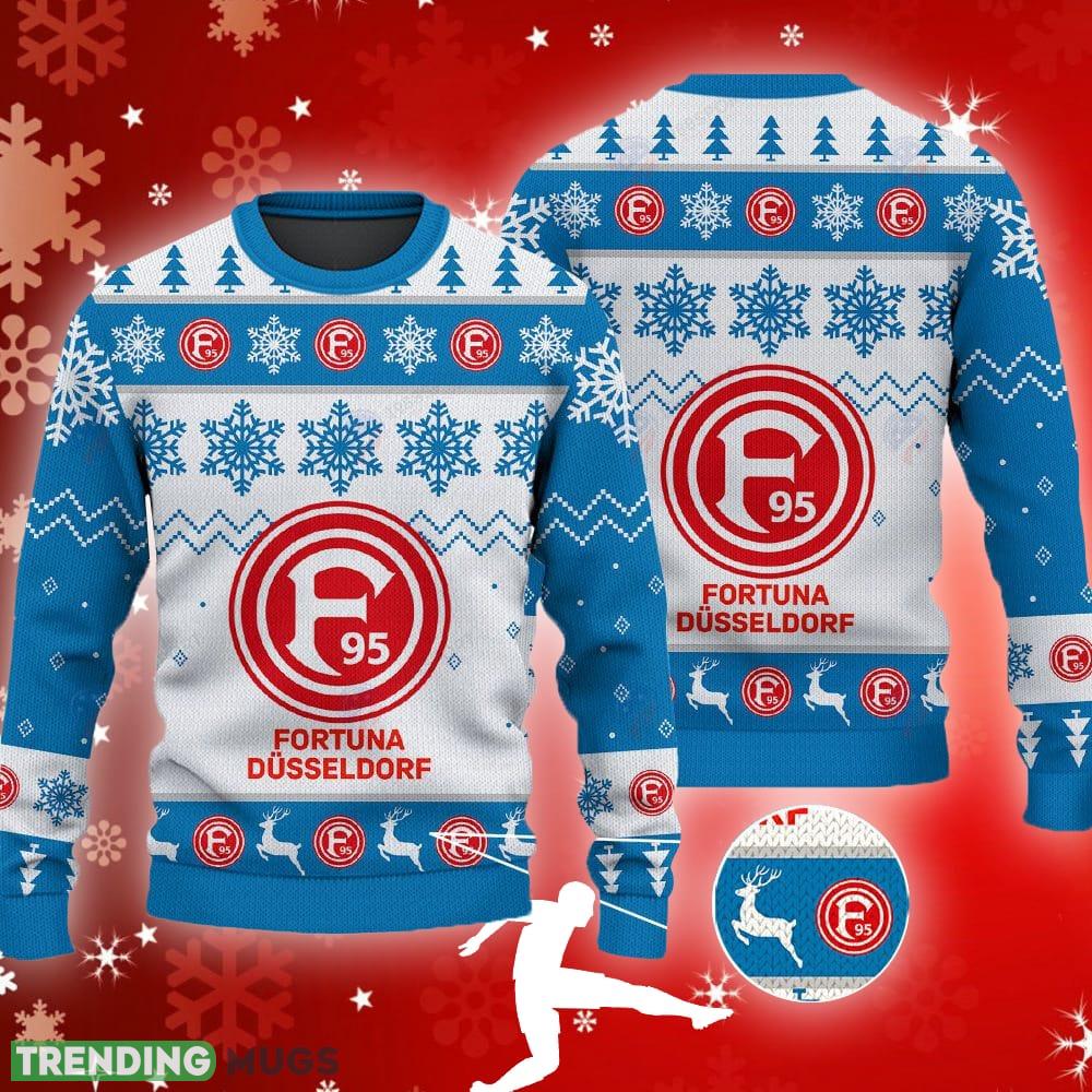 Fortuna Dusseldorf Big Logo Ugly Christmas Tree Blue Sweater AOP Gift Holidays – Fortuna Dusseldorf Big Logo Ugly Snowflakes Reindeer Blue Sweater AOP Gift Holidays