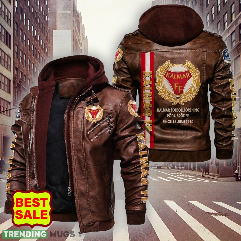 Fotbollsallsvenskan Kalmar FF Style 2 Logo Brown And Black Leather Jacket For Fans Material Information