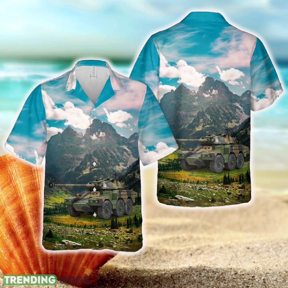 Get ready to hit the beach in style with our French Army Panhard ERC 90 Sagaie Hawaiian Shirt! This unique shirt is perfect for fans of military history and tropical vibes alike. Made from high-quality, breathable fabric, this shirt will keep you cool and comfortable all day long. Stand out from the crowd and show off your love for all things military with this eye-catching Hawaiian shirt. Whether you’re lounging by the water or exploring the town, this shirt is sure to turn heads. Add a touch of military flair to your beach wardrobe with our French Army Panhard ERC 90 Sagaie Hawaiian Shirt!