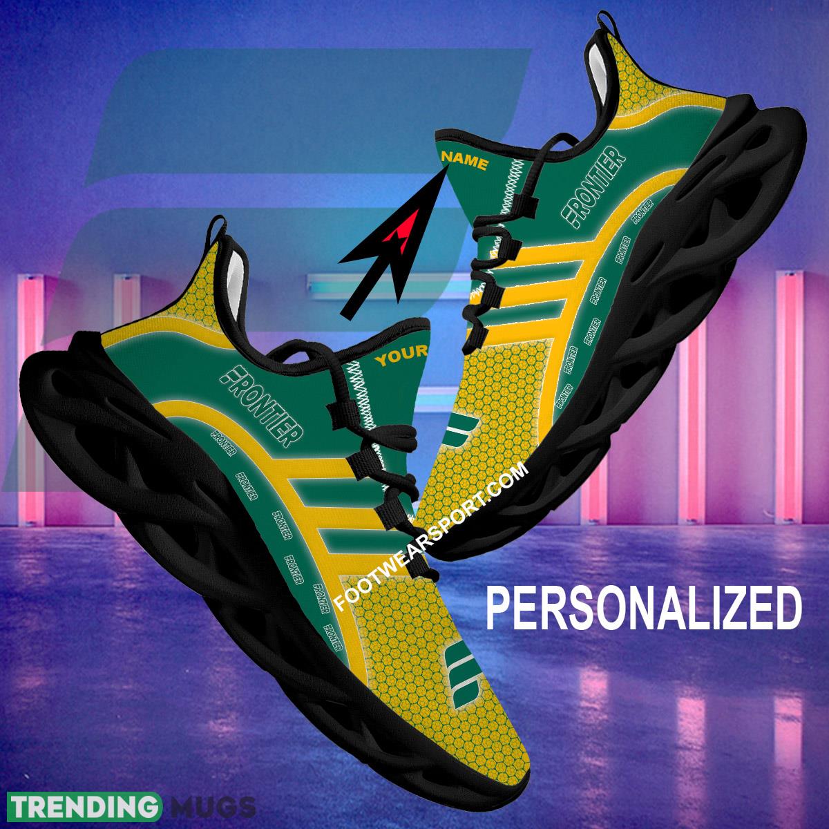 This Frontier Airlines Max Soul Shoes Brand For Fans Gift Panache Chunky Sneaker Custom Name Max Soul Shoes is a breathable, lightweight, and comfortable casual outdoor shoe that has a unique design. It is made of a mesh fabric which makes it sweat absorbent and breathable, while the rubber bottom ensures traction, comfort, and durability. It is available in two colors: black or white sole. There are two styles of shoelace holes so you can choose your preference.