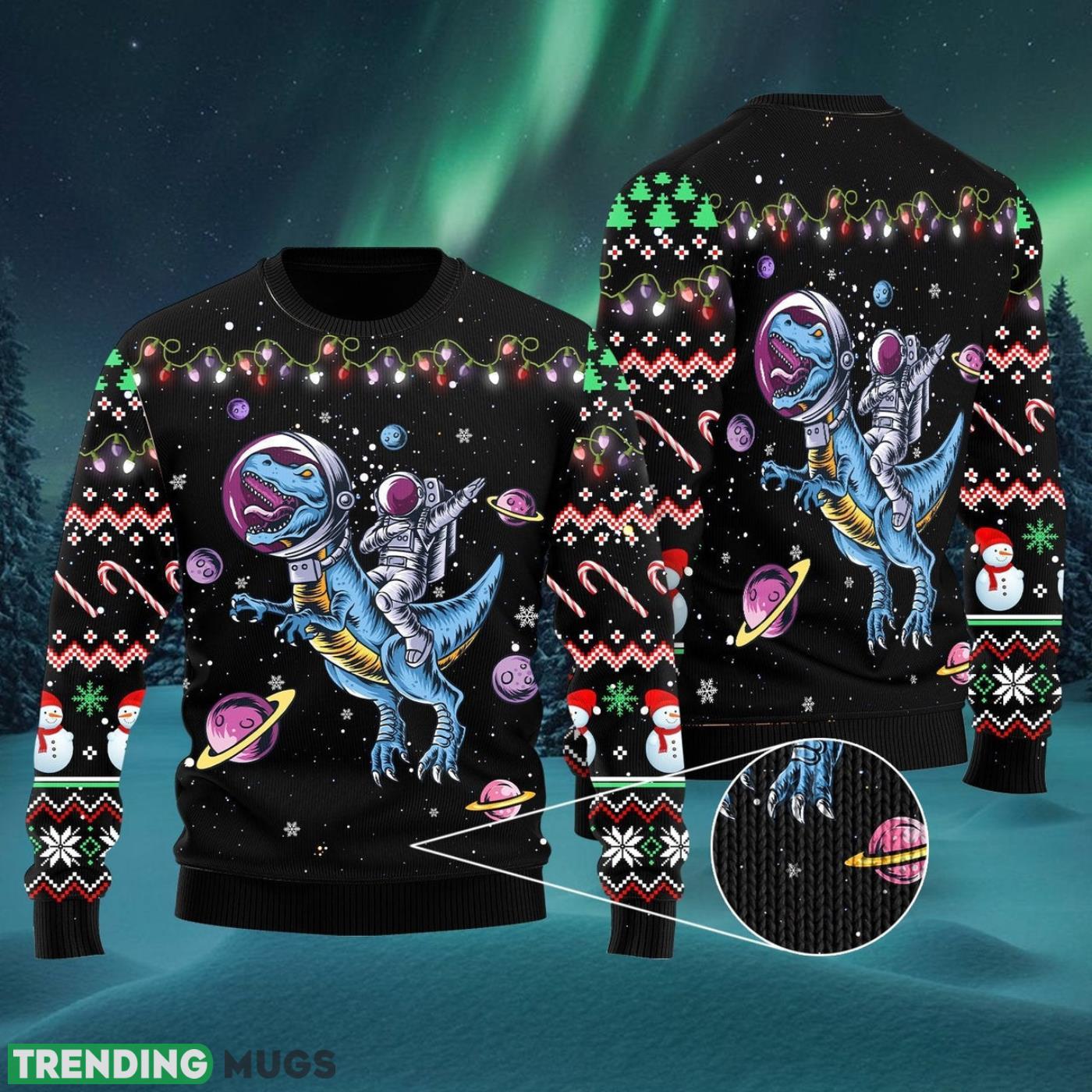 Funny Astronauts Ride A T-rex In Space With The Planet Ugly Christmas Sweater Cute Christmas Gift For Men And Women Informations: