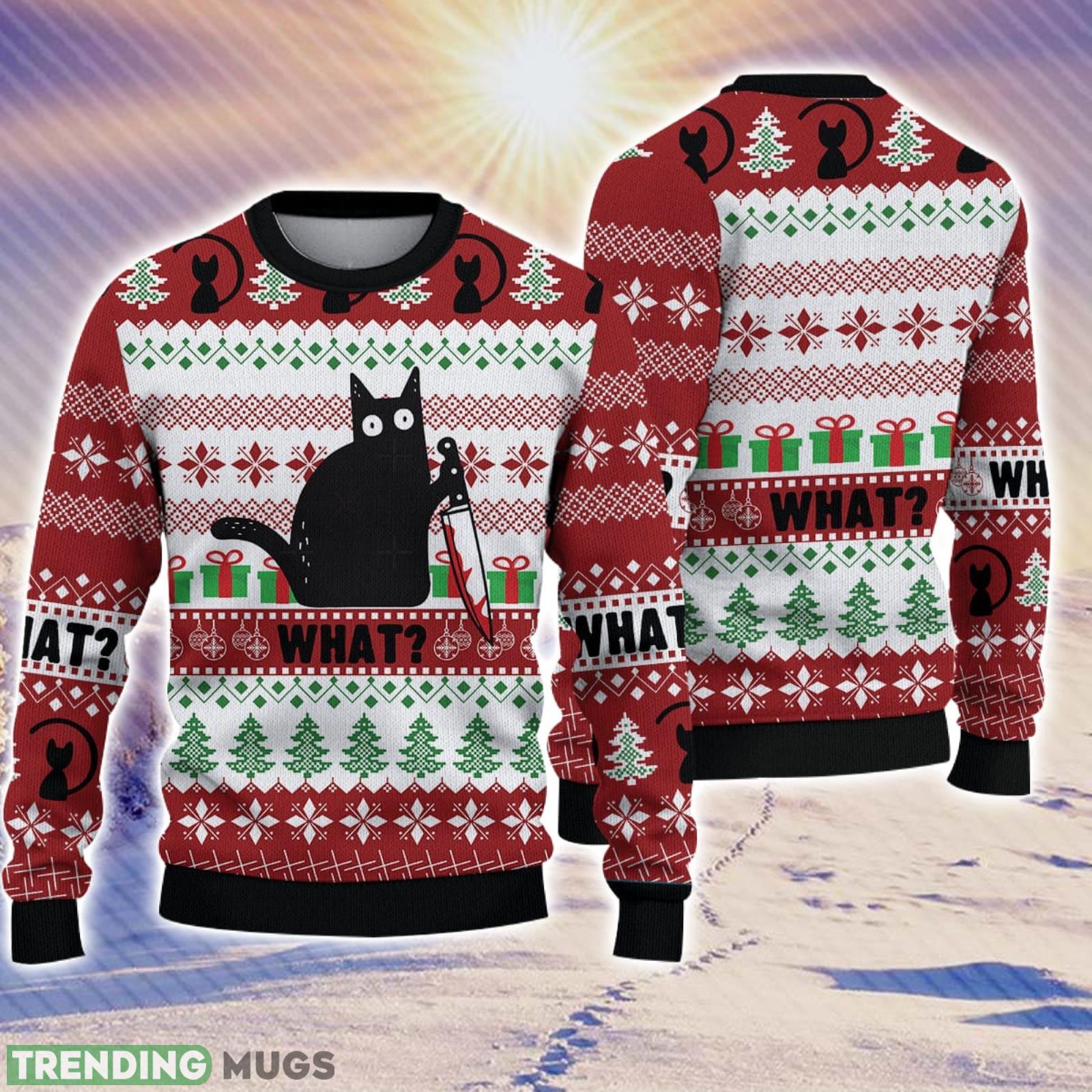 Funny Black Cat Christmas Gift For Holiday Black Cat What 3D Ugly Christmas Sweater Informations: