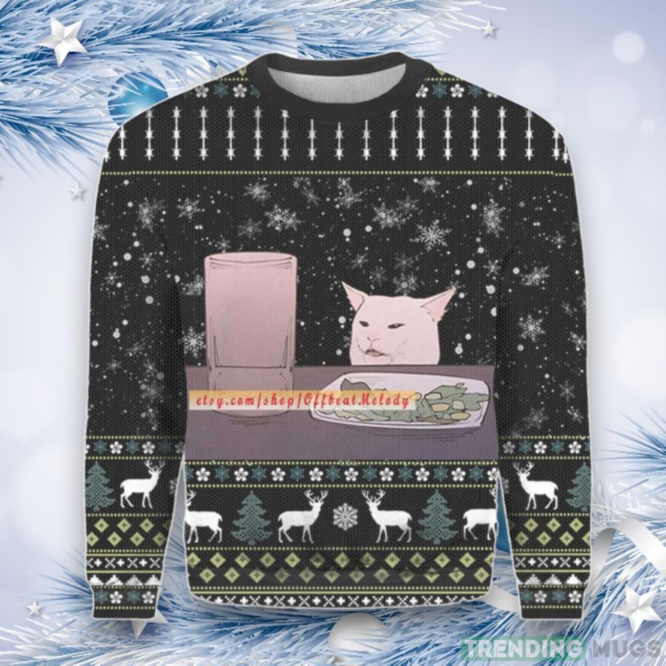 Don’t miss out on the opportunity to spread joy and laughter this Christmas. Order your Funny Cat Meme Christmas Ugly Sweater 3D Over Print today and be the life of the party!