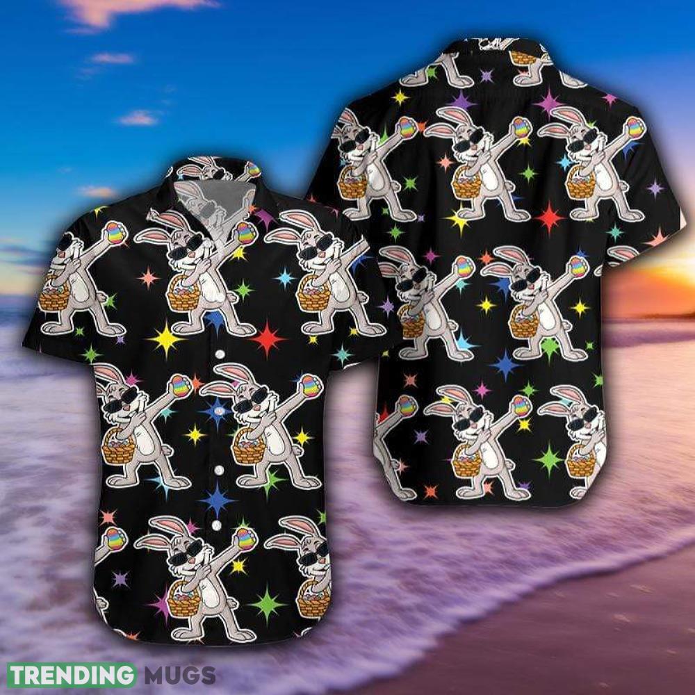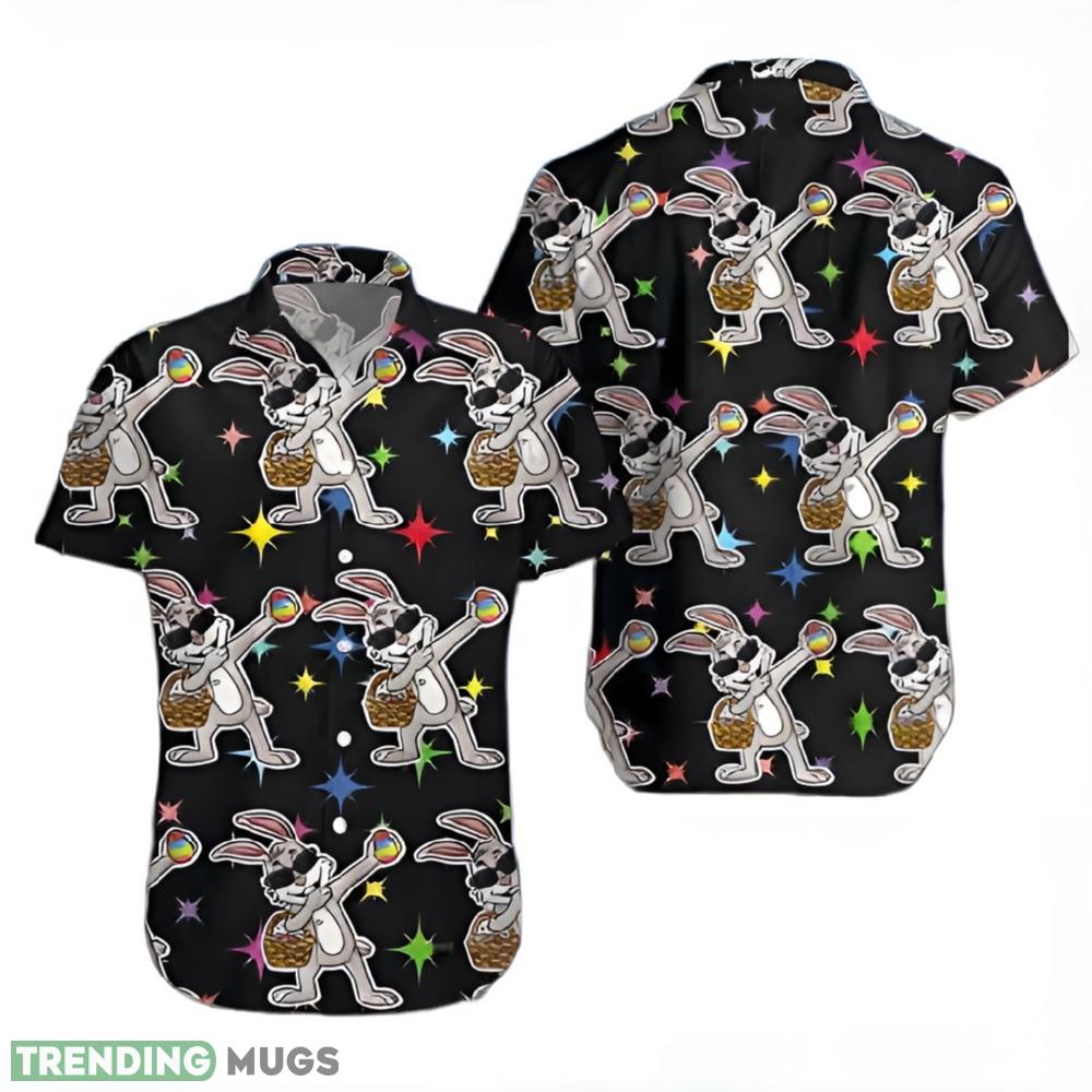 Funny Dabbing Bunny With Egg Happy Easter Black Unisex Hawaiian Shirt Aloha Shirt For Men And Women Details: