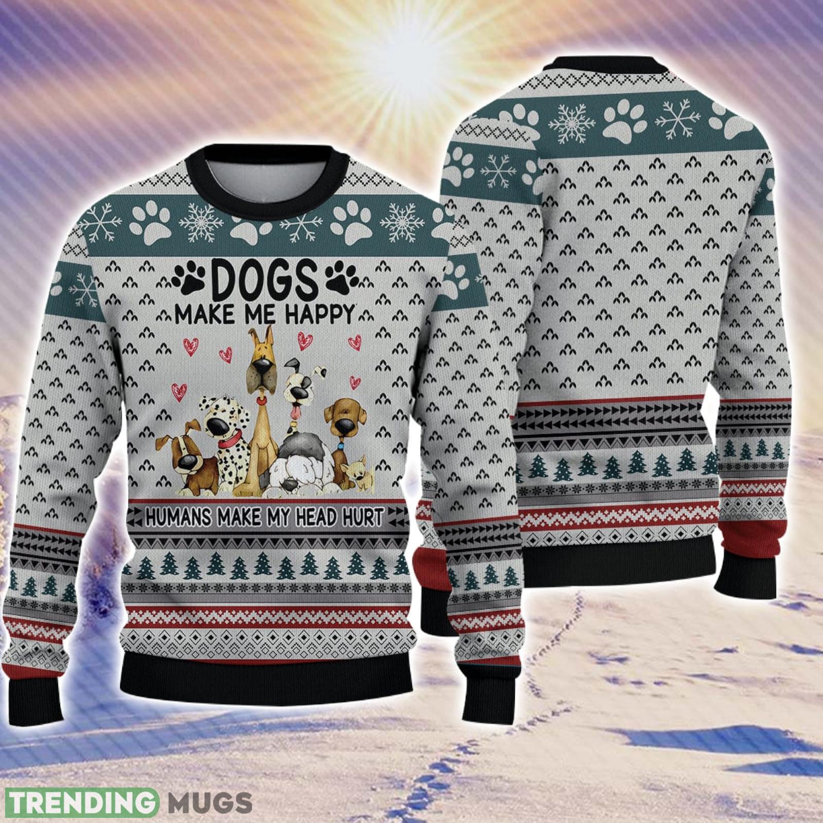 Funny Dogs Make Me Happy Christmas Gift For Holiday Humans Make My Head Hurt 3D Ugly Christmas Sweater Product Photo 1