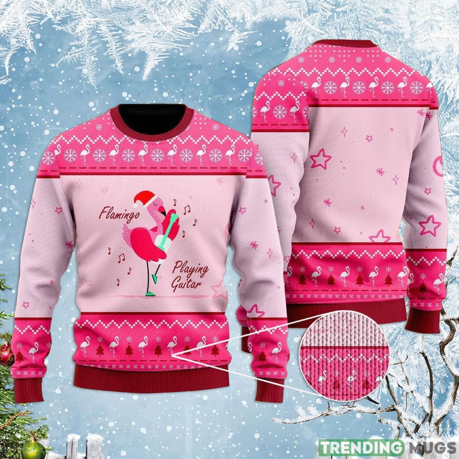 Funny Flamingo Playing Guitar Christmas Christmas Gift Ugly Christmas Sweater Informations: