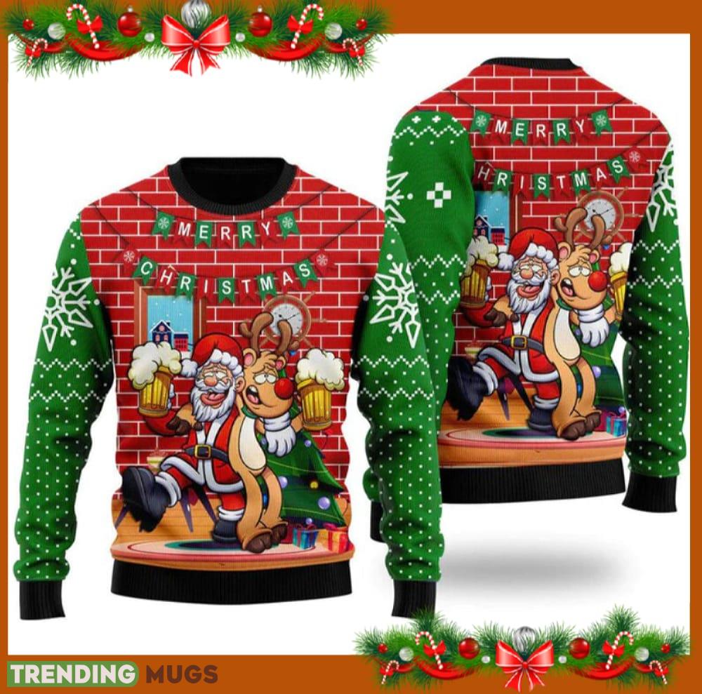 Funny Santa Drink Beer With Reindeer Ugly Christmas Sweater Funny Gift For Men And Women Family Holidays Informations: