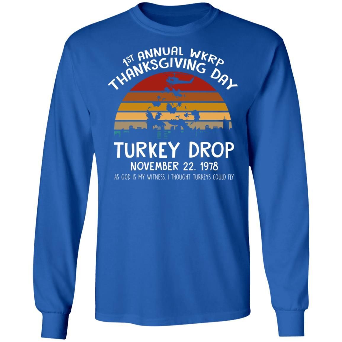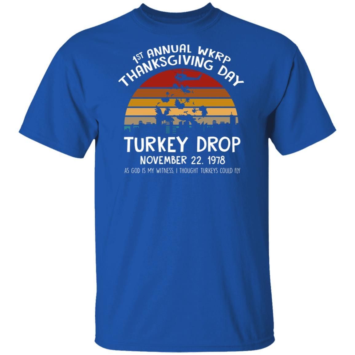 Funny WKRP Turkey Drop Thanksgiving Holliday Shirt. 1st Annual WKRP Thanksgiving Day. Turkey Drop November 22 1987. As God Is My Witness. I Thought Turkeys Could Fly. This funny WKRP Turkey Drop shirt available in t-shirt, hoodies, long sleeve and tank top.