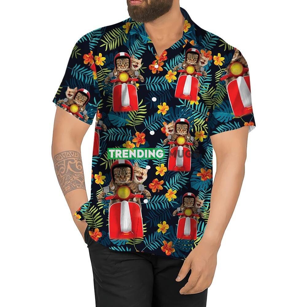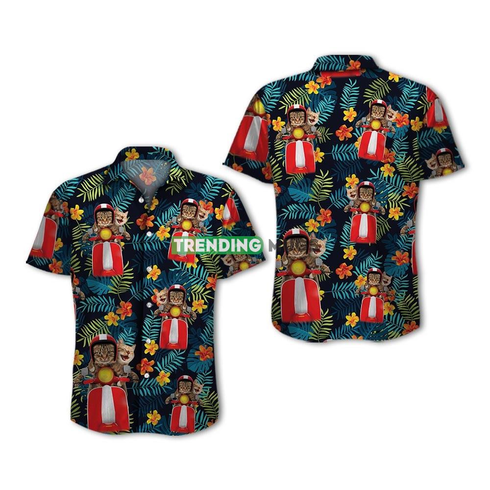 Funy Cat Vespa Scooter Aloha Shirt, Vacation Beach Shirt, Shark Summer Hawaiian Shirt - Funy Cat Vespa Scooter Aloha Shirt, Vacation Beach Shirt, Shark Summer Shirt, Summer Party Shirt, Cat Lovers Gift, Hawaii Style Shirt ChFM44_1