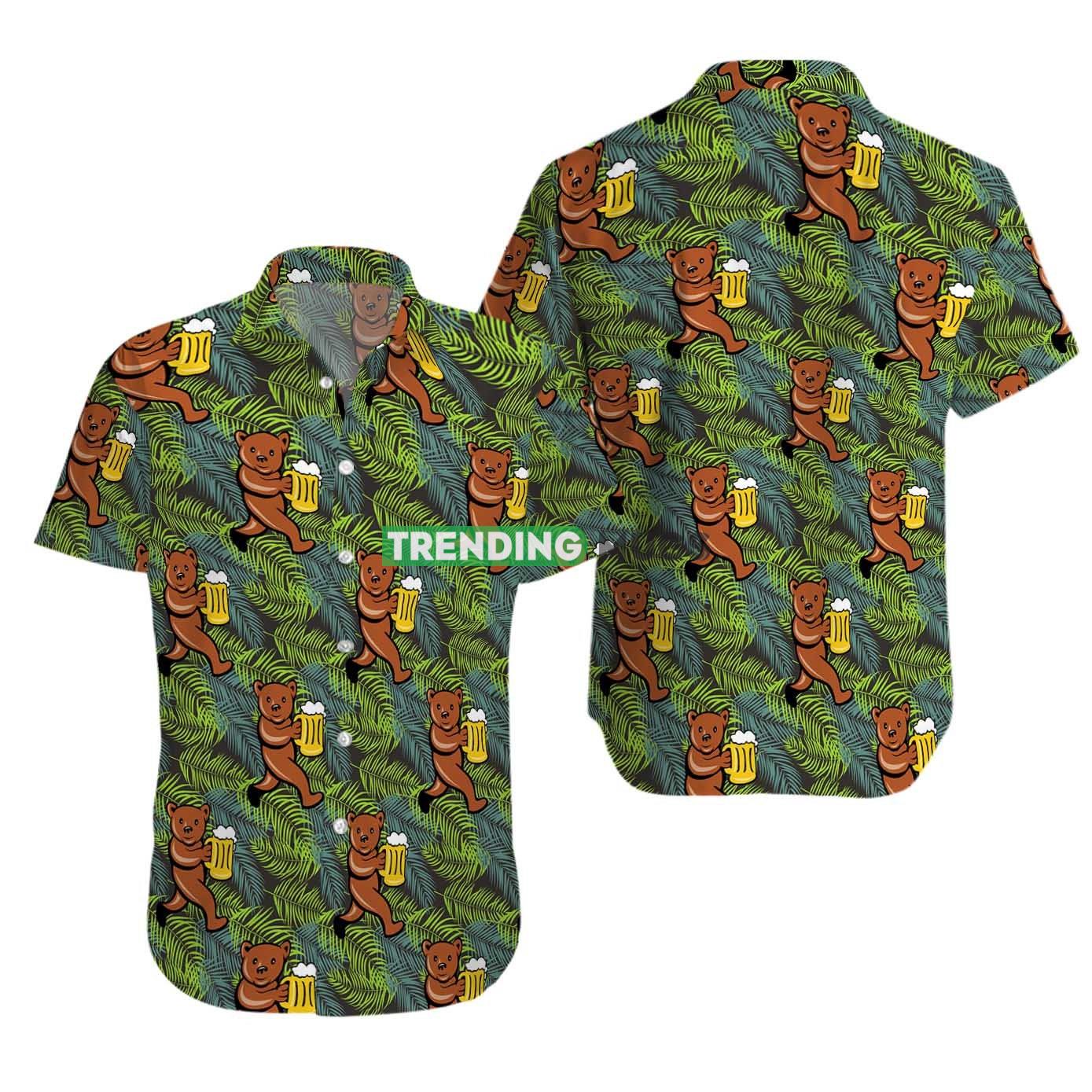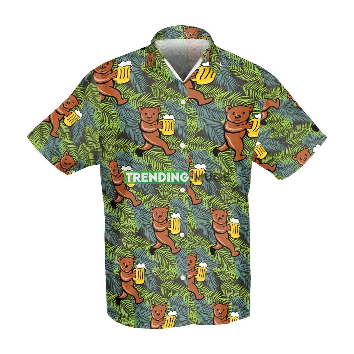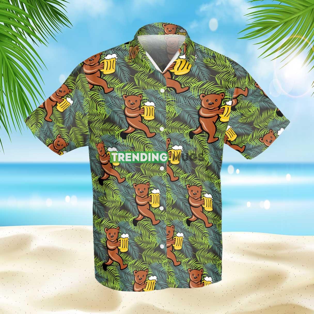Fuuny Bear Drinking Beer Summer Hawaiian Shirt Details: