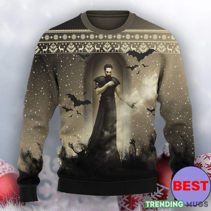 Crafted from premium quality materials, this sweater boasts a soft and cozy texture that promises to keep you warm and comfortable during those chilly gaming nights. The intricate knitted pattern features a striking image of Count Dracula himself, complete with his signature cloak, fangs, and piercing gaze.