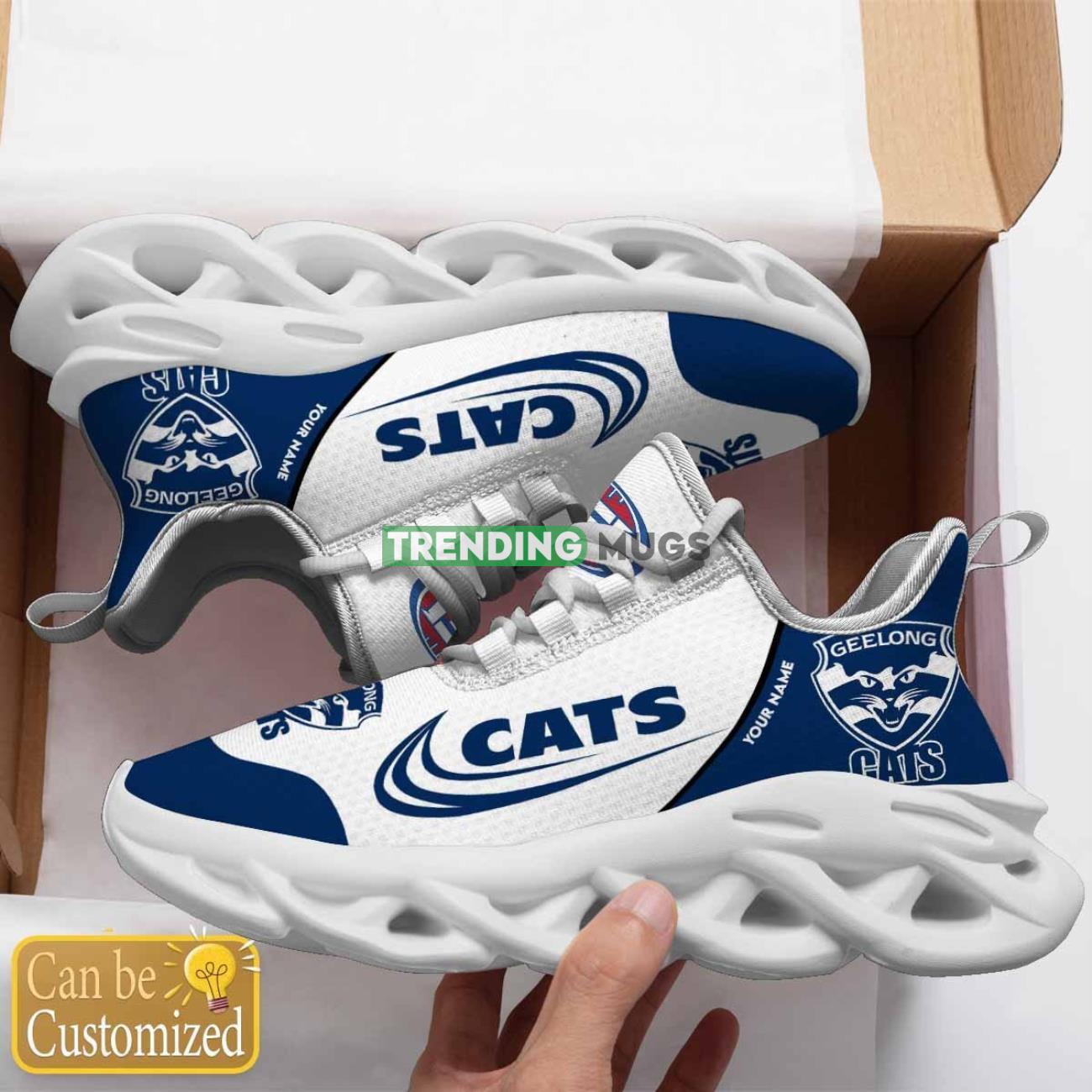 This Geelong Football Club Max Soul Shoes Men Women Sport Sneakers Running Shoes Gift White Custom Name is a breathable, lightweight, and comfortable casual outdoor shoe that has a unique design. It is made of a mesh fabric which makes it sweat absorbent and breathable, while the rubber bottom ensures traction, comfort, and durability. It is available in two colors: black or white sole. There are two styles of shoelace holes so you can choose your preference.
