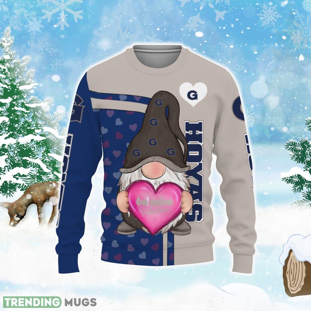 Georgetown Hoyas Be Mine Valentine Gnomes With Valentine Football American Valentine Day Ugly Christmas AOP Sweater Informations:
