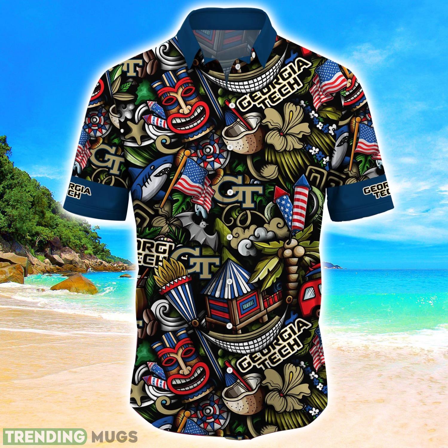 Georgia Tech Yellow Jackets NCAA3 Flower Hawaii Shirt Aloha Funny Pattern Summer Shirts Details: