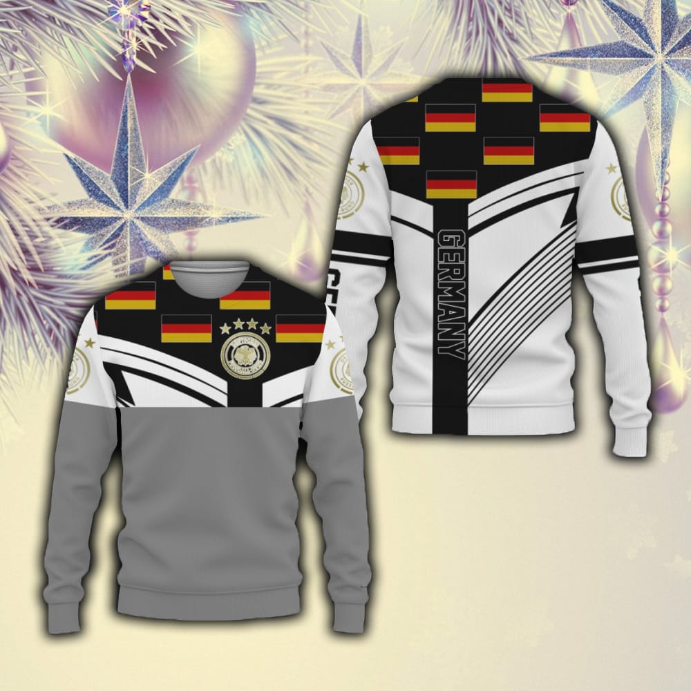 Crafted with utmost care and attention to detail, our sweater proudly displays the iconic Germany flag, symbolizing your unwavering support for your favorite team. Whether you’re attending a holiday party, cozying up by the fire, or cheering on your team from the stadium, this sweater is the perfect way to showcase your passion for German soccer.