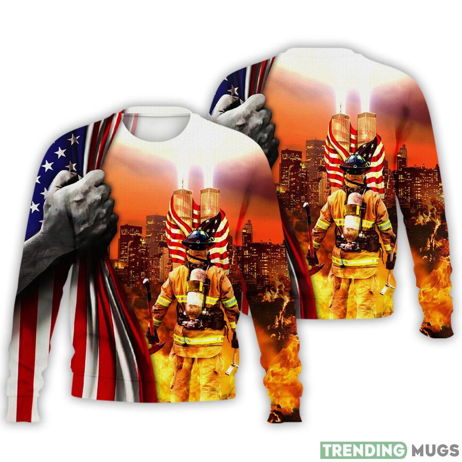 Some of the Gift Patriot Day 3D Sweater Holding USA Flag FireFighter Twin Towers Gifts 3D Sweater photos