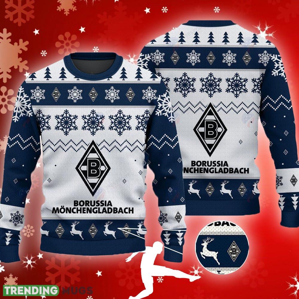 Gladbach Big Logo Ugly Christmas Tree Navy Sweater For Men And Women – Gladbach Big Logo Ugly Snowflakes Reindeer Navy Sweater For Men And Women