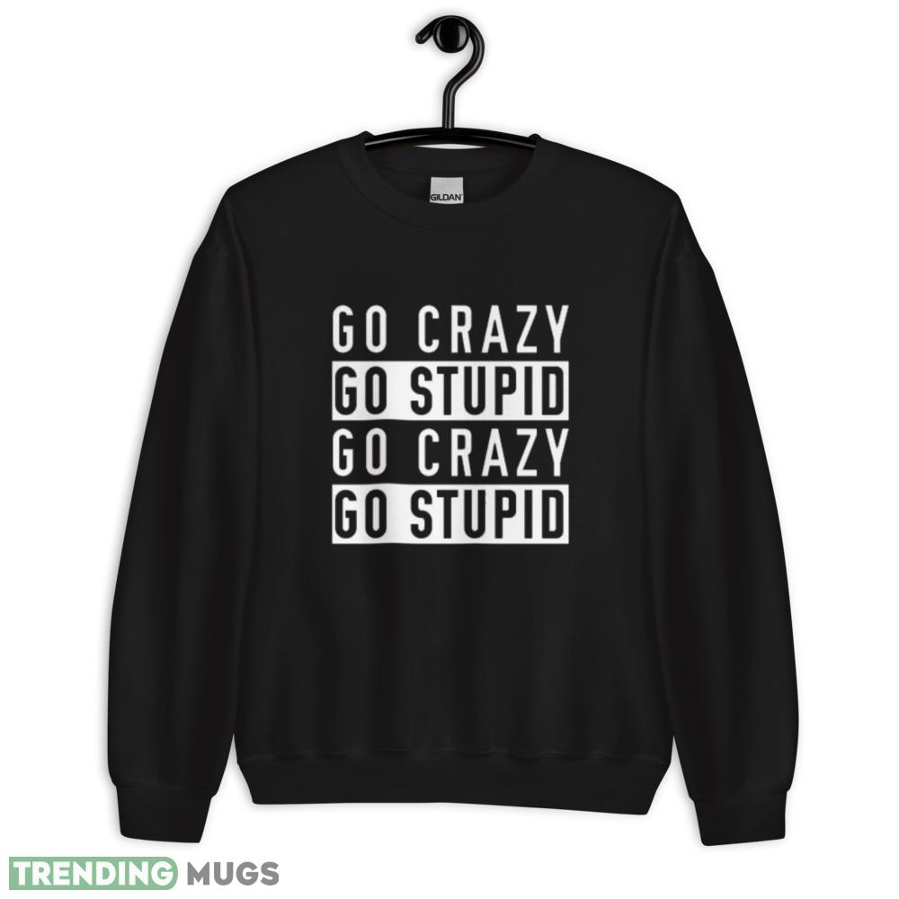With its fun and playful design, the Go Crazy Go Stupid T Shirt is the perfect addition to any wardrobe. Wear it to a party, a concert, or just around town and let your wild side shine through. So what are you waiting for? Order your Go Crazy Go Stupid T Shirt today and start turning heads wherever you go!