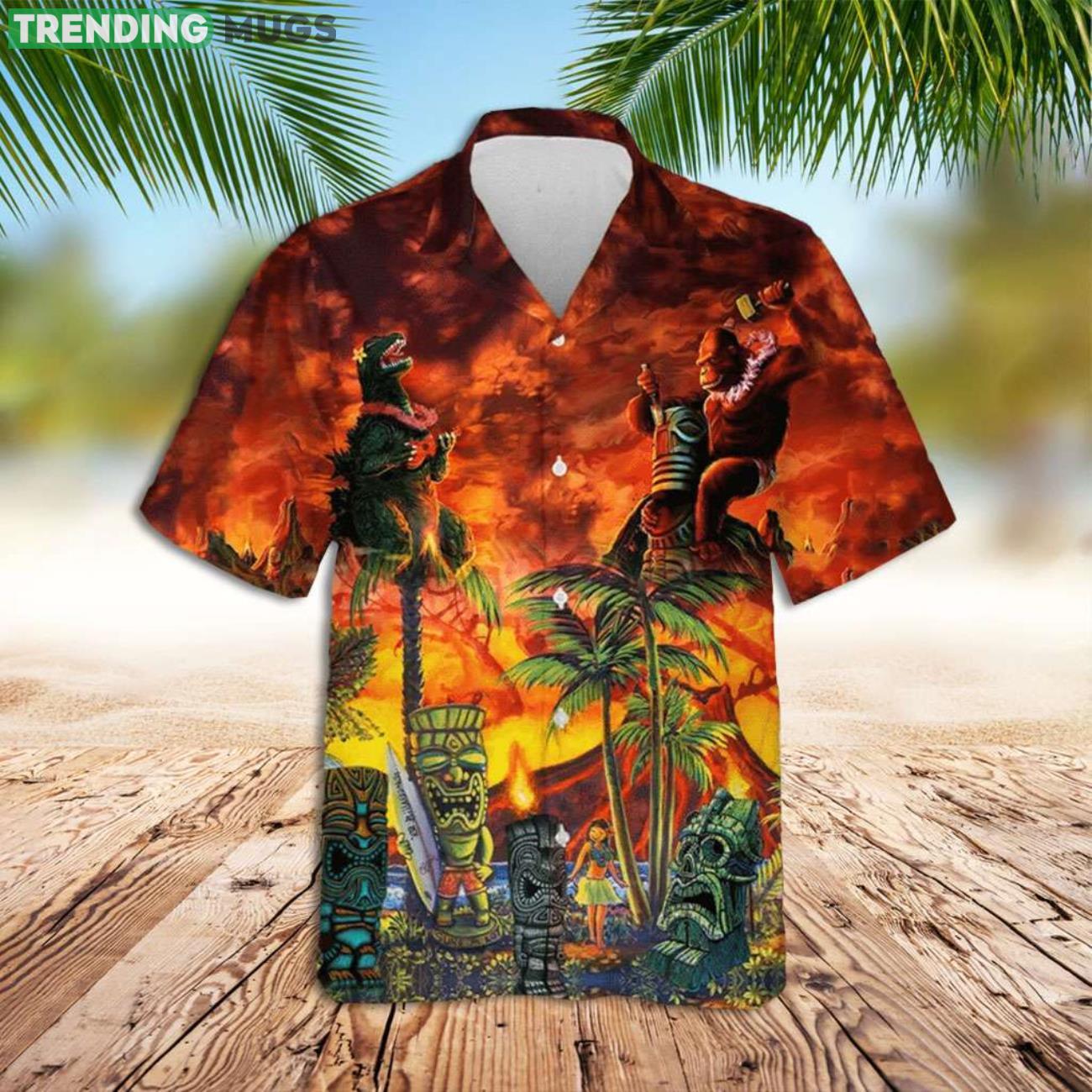 Godzilla Cute Summer Gift Godzilla And Kong Tropical Volcanic Hawaiian Shirt Details: