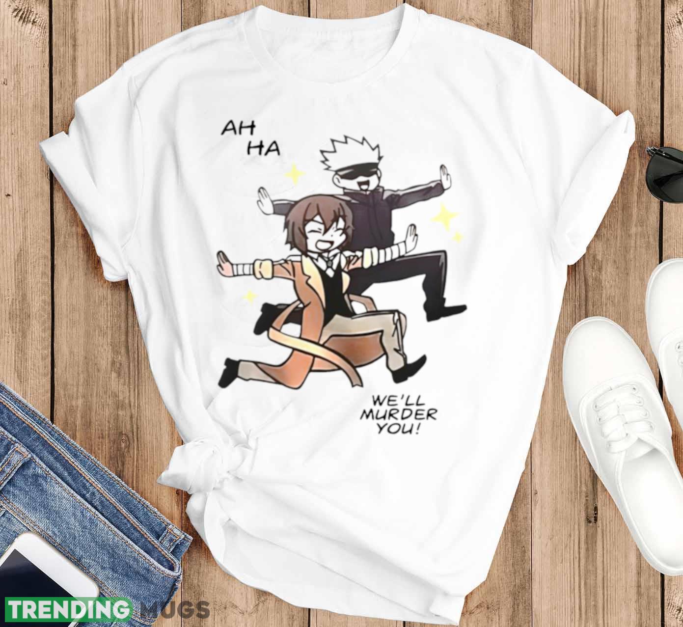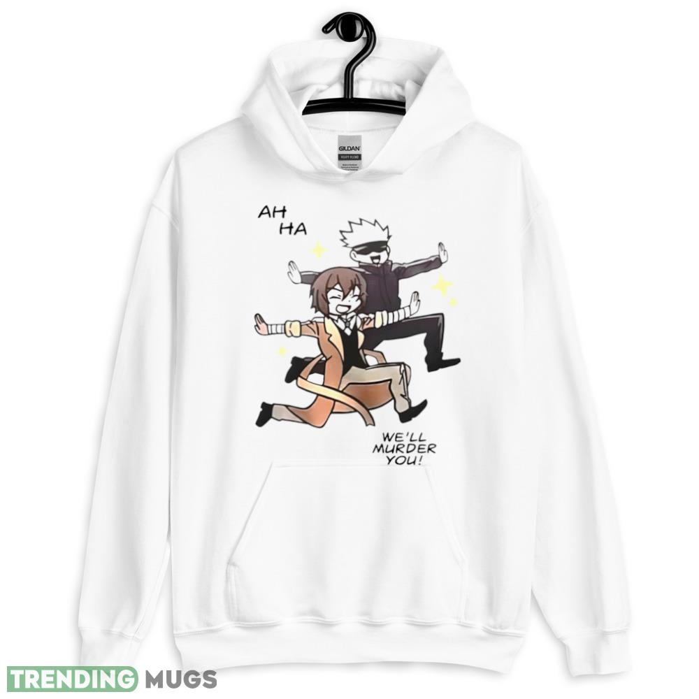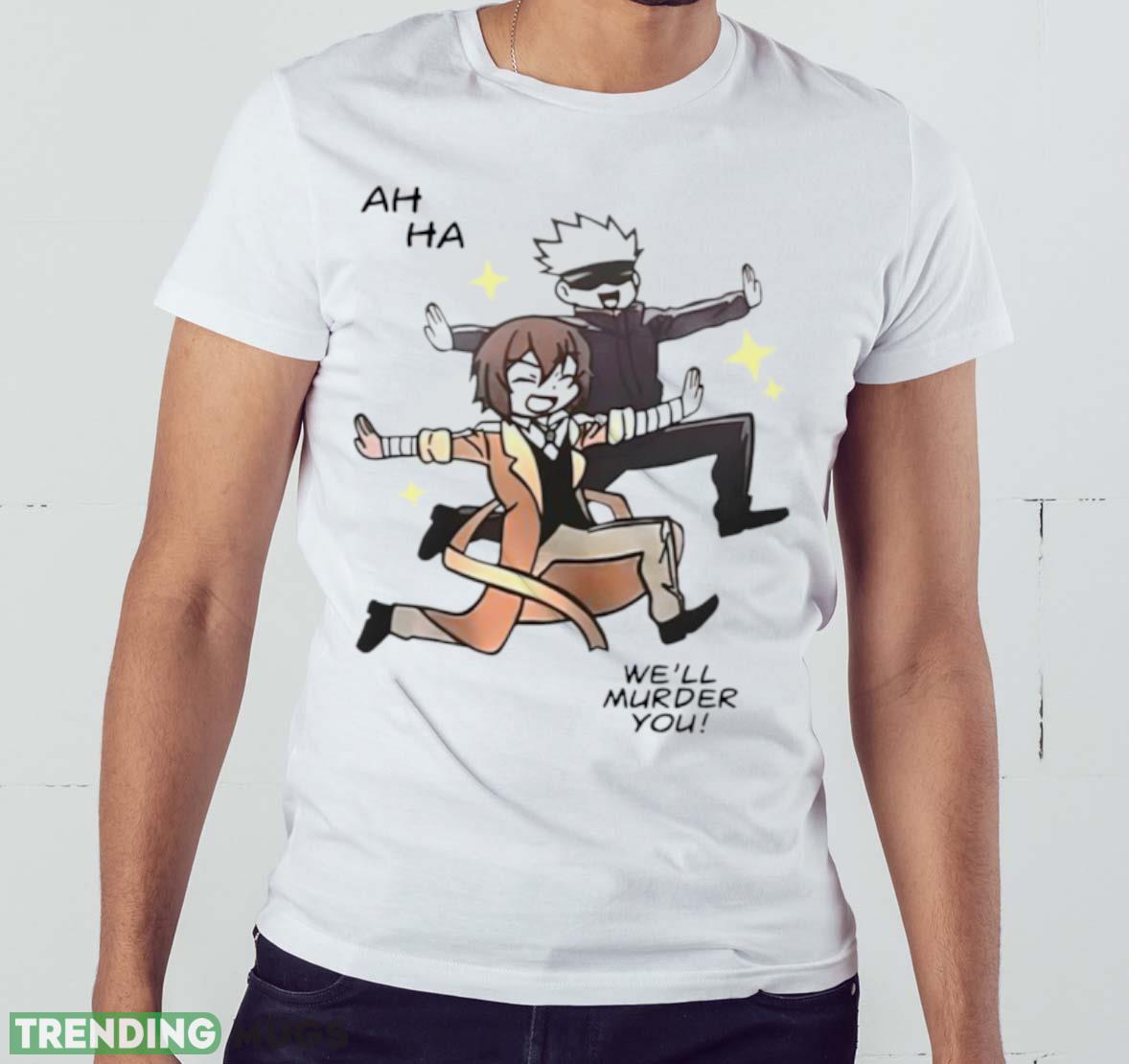 Some of the Gojo Satoru and Dazai Osamu ah ha we’ll murder you shirt photos