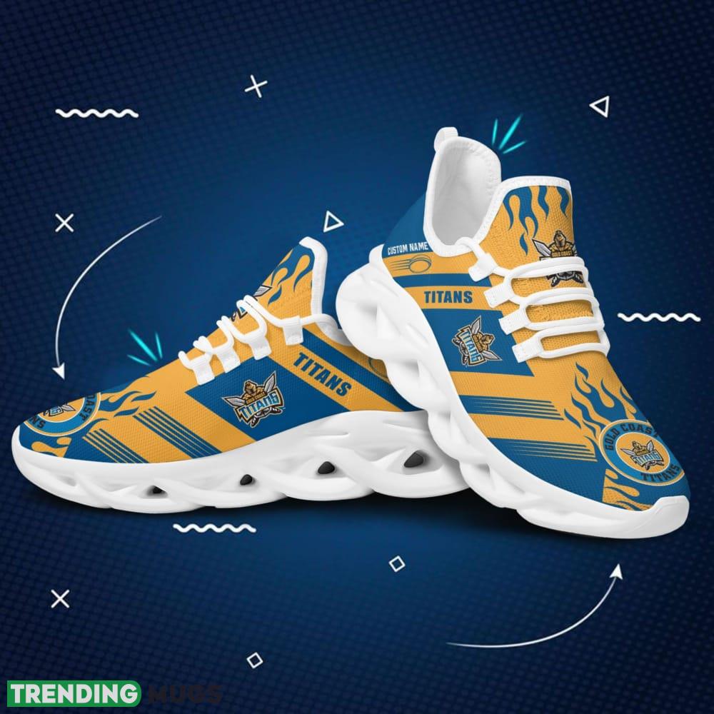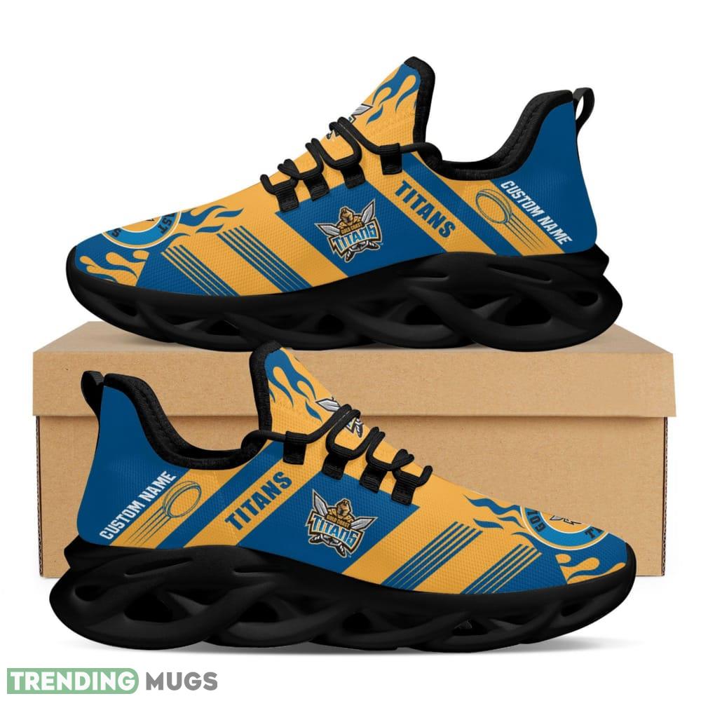 Gold Coast Titans Logo Custom Name Pattern 3D Max Soul Sneaker Shoes In Blue And Yellow information: