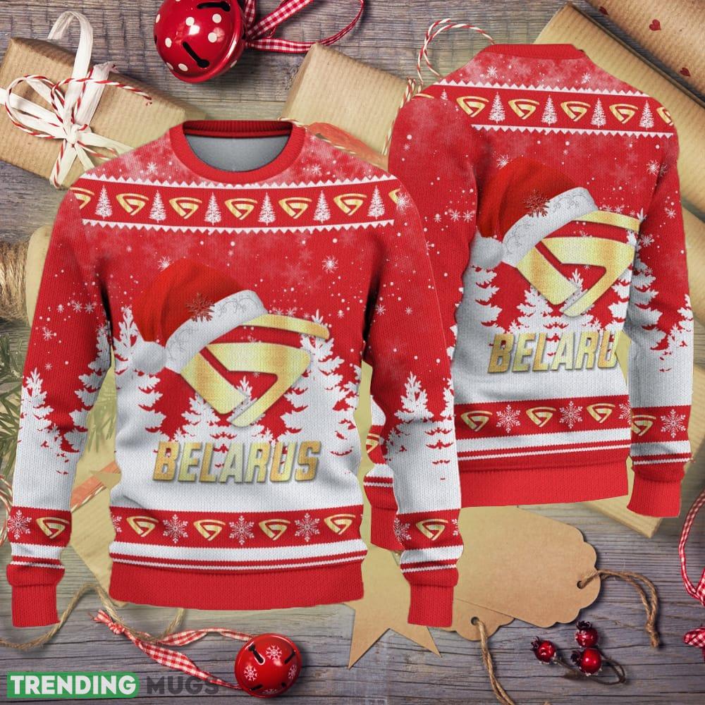 Golden Belarus Logo Santa Hat Car Truck And Motorcycle Ugly Christmas Sweater Informations: