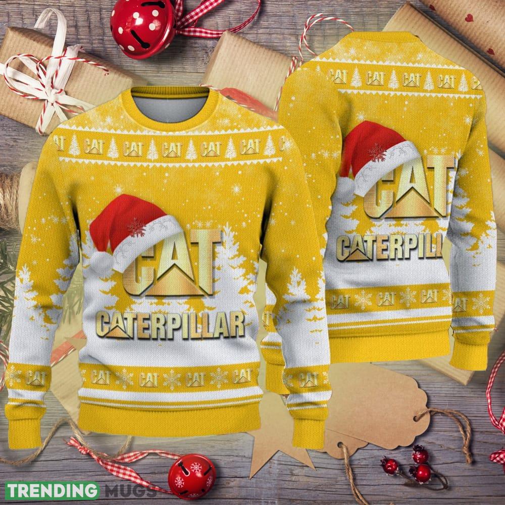 Golden Caterpillar Inc Logo Santa Hat Car Truck And Motorcycle Ugly Christmas Sweater Informations:
