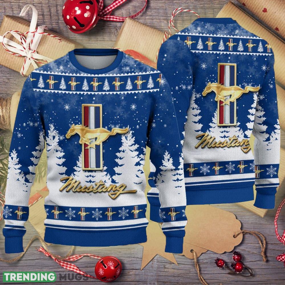 Golden Ford Mustang Logo Santa Hat Car Truck And Motorcycle Ugly Xmas Sweater AOP Informations: