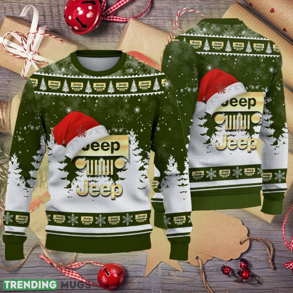 Golden Jeep Logo Santa Hat Car Truck And Motorcycle Ugly Christmas 3D Sweater Informations: