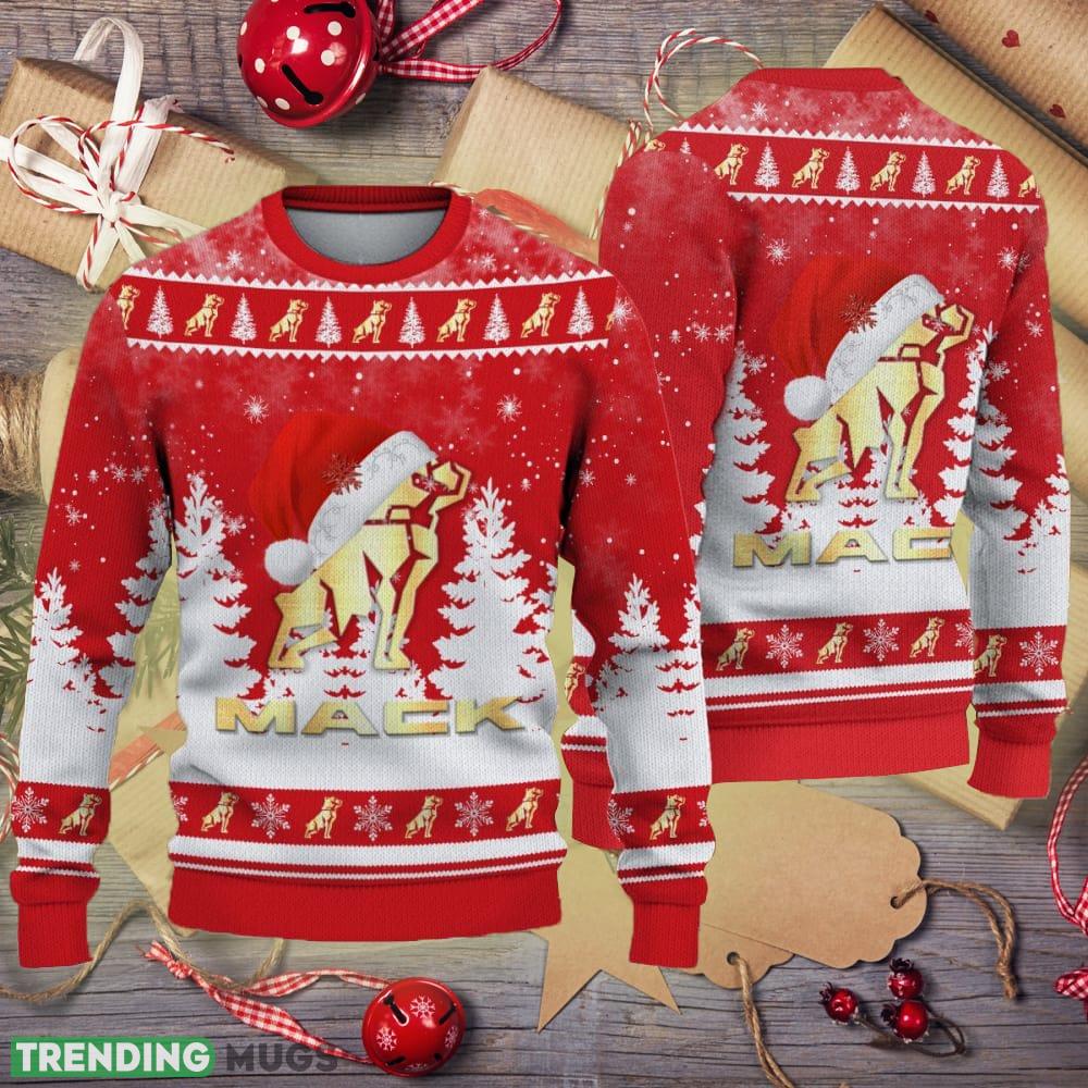 Golden Mack Logo Santa Hat Car Truck And Motorcycle Knitted Christmas 3D Sweater Informations:
