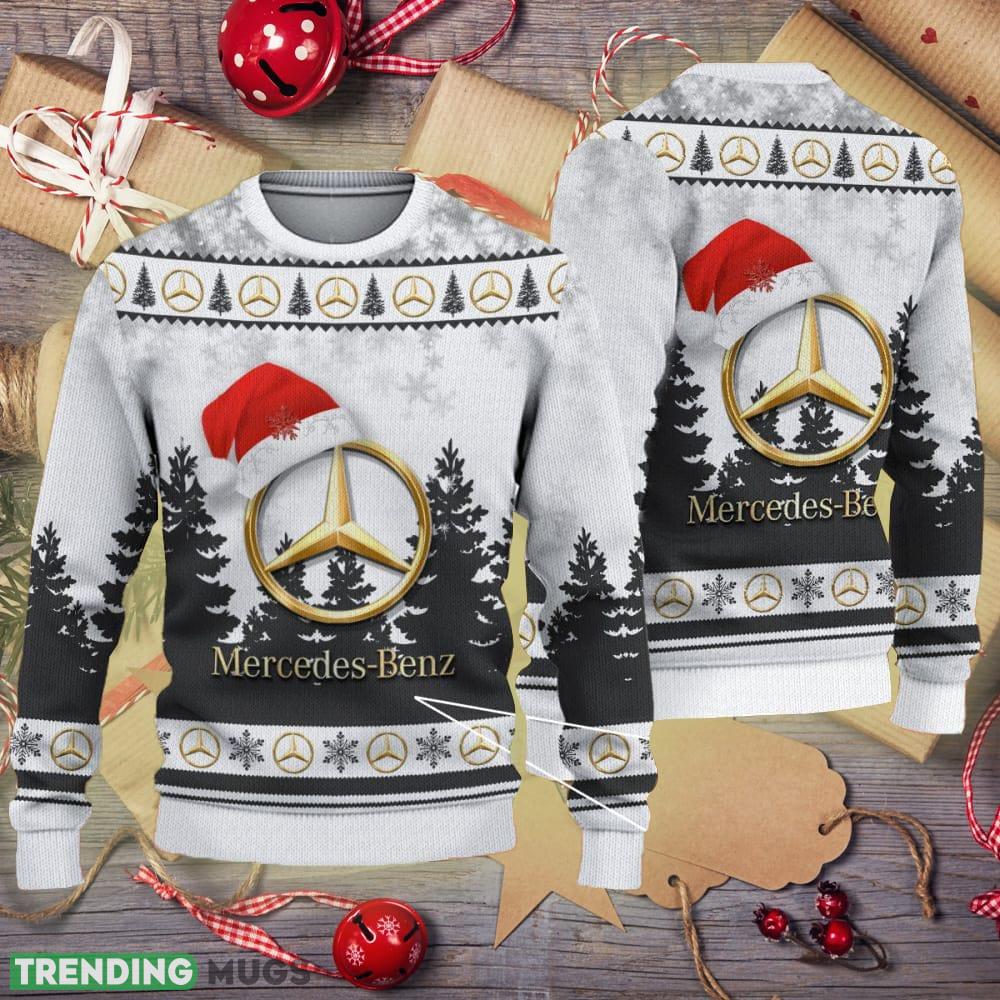 Golden Mercedes-Benz White Logo Santa Hat Car Truck And Motorcycle Ugly Christmas Sweater Informations: