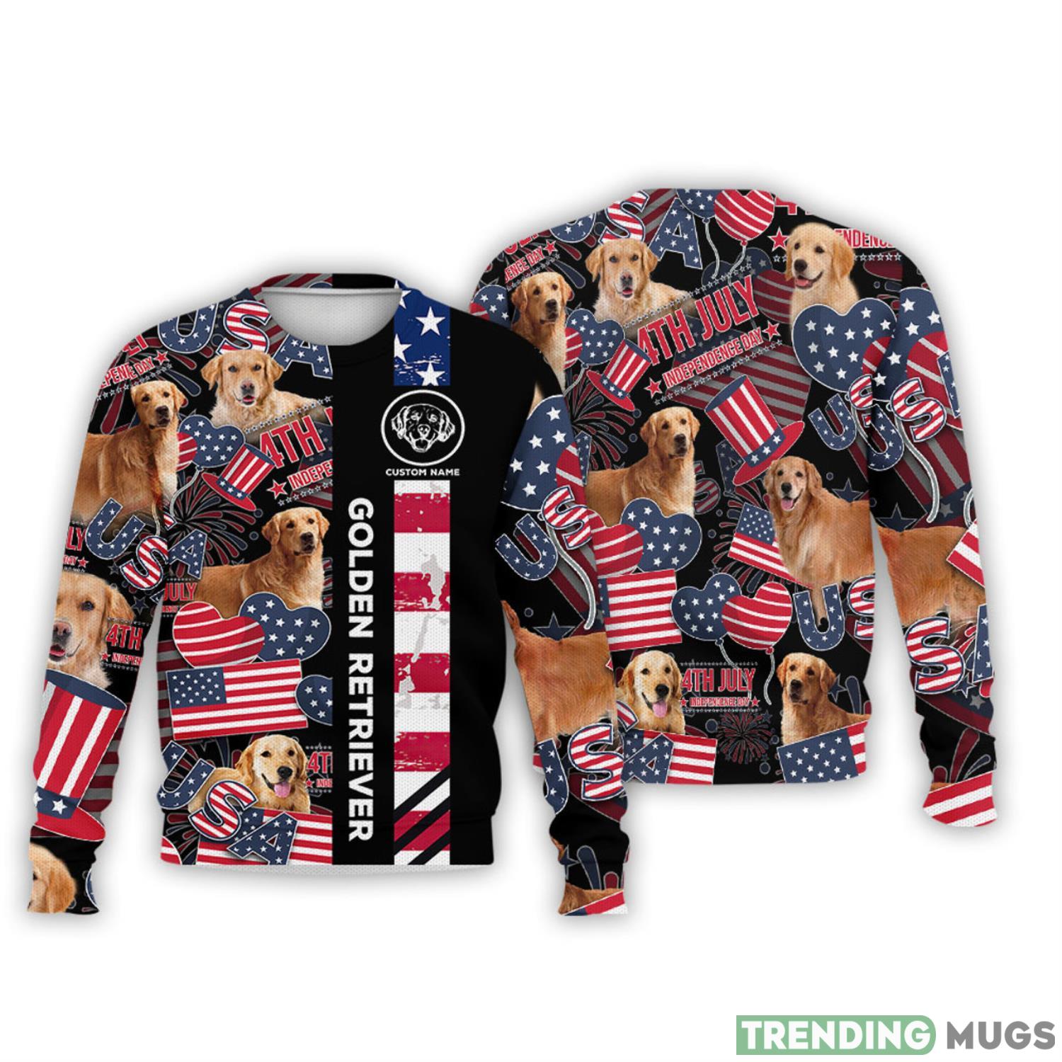 Golden Retriever Cute Pattern 4th Of July Holiday Flag American Gift 3D Sweater Informations: