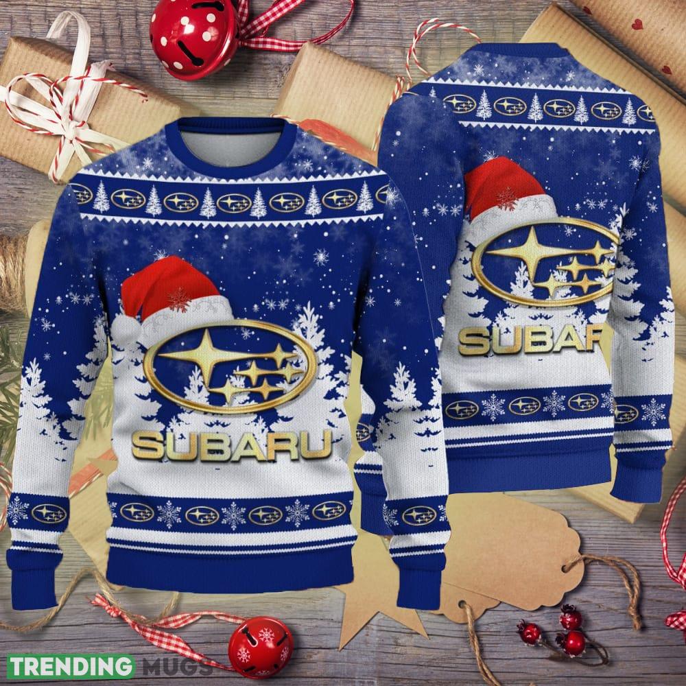 Golden Subaru Logo Santa Hat Car Truck And Motorcycle Knitted Xmas 3D Sweater – Golden Subaru Logo Santa Hat Car Truck And Motorcycle Knitted Xmas 3D Sweater