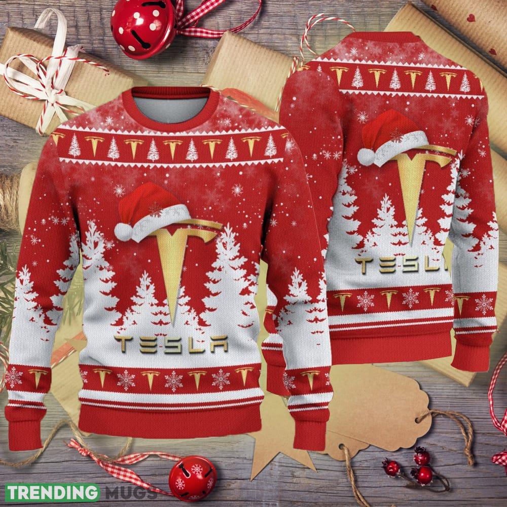 Golden Tesla Logo Santa Hat Car Truck And Motorcycle Ugly Christmas Sweater AOP Informations: