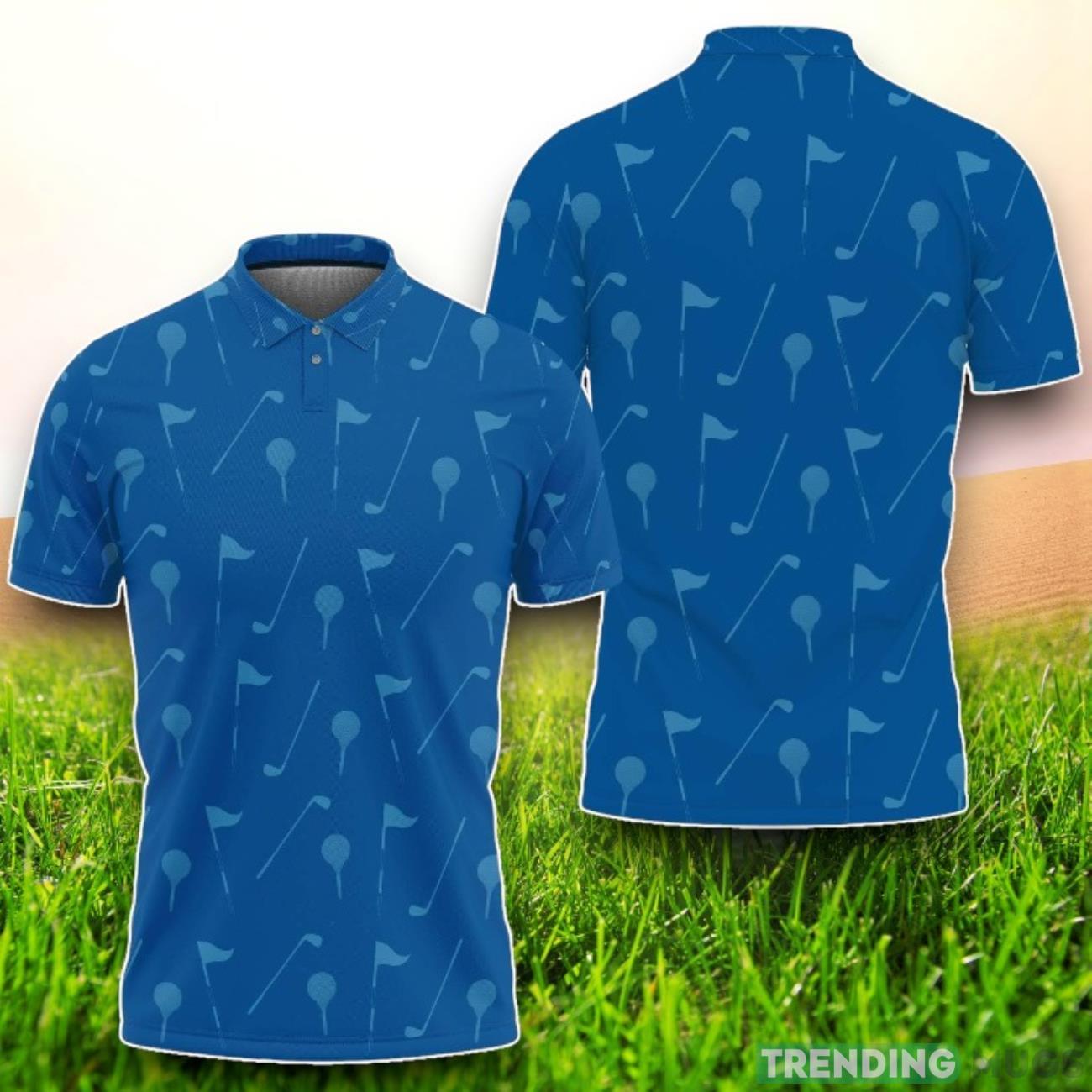 Featuring a unique golf pattern design, this polo shirt celebrates your passion for the sport in a trendy and eye-catching way. The vibrant blue color is not only visually appealing but also complements any golf ensemble seamlessly.