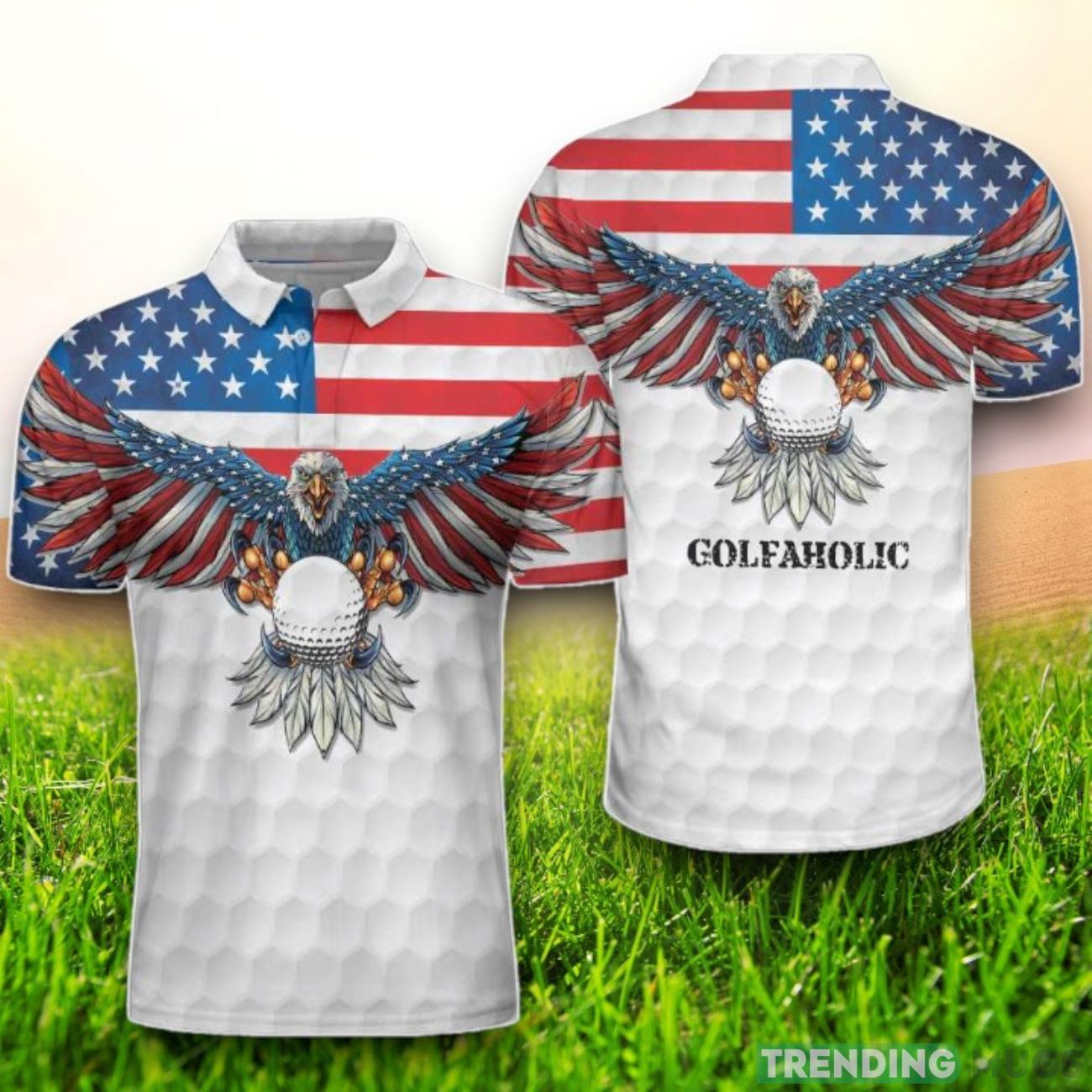 Golfaholic Eagle Speading American Flag Wings And Golf Ball Polo Shirt Information: