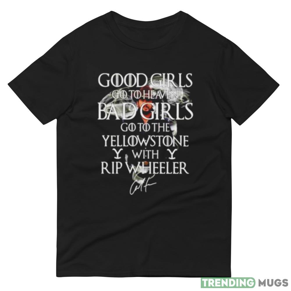 Get ready to turn heads with the Good Girls Go To Heaven Bad Girls Go To The Yellowstone With Rip Wheeler Signature Shirt! This stylish and trendy shirt is perfect for those who want to make a bold statement with their fashion choices. The design features a unique combination of the phrase “Good Girls Go To Heaven” and “Bad Girls Go To The Yellowstone” along with the signature of Rip Wheeler, the popular character from the hit TV show Yellowstone. Made from high-quality materials, this shirt is not only comfortable to wear but also long-lasting. Whether you’re heading out for a casual day with friends or want to add some edge to your outfit, this shirt is the perfect choice for you. So, what are you waiting for? Add the Good Girls Go To Heaven Bad Girls Go To The Yellowstone With Rip Wheeler Signature Shirt to your wardrobe today and let your fashion sense do the talking!