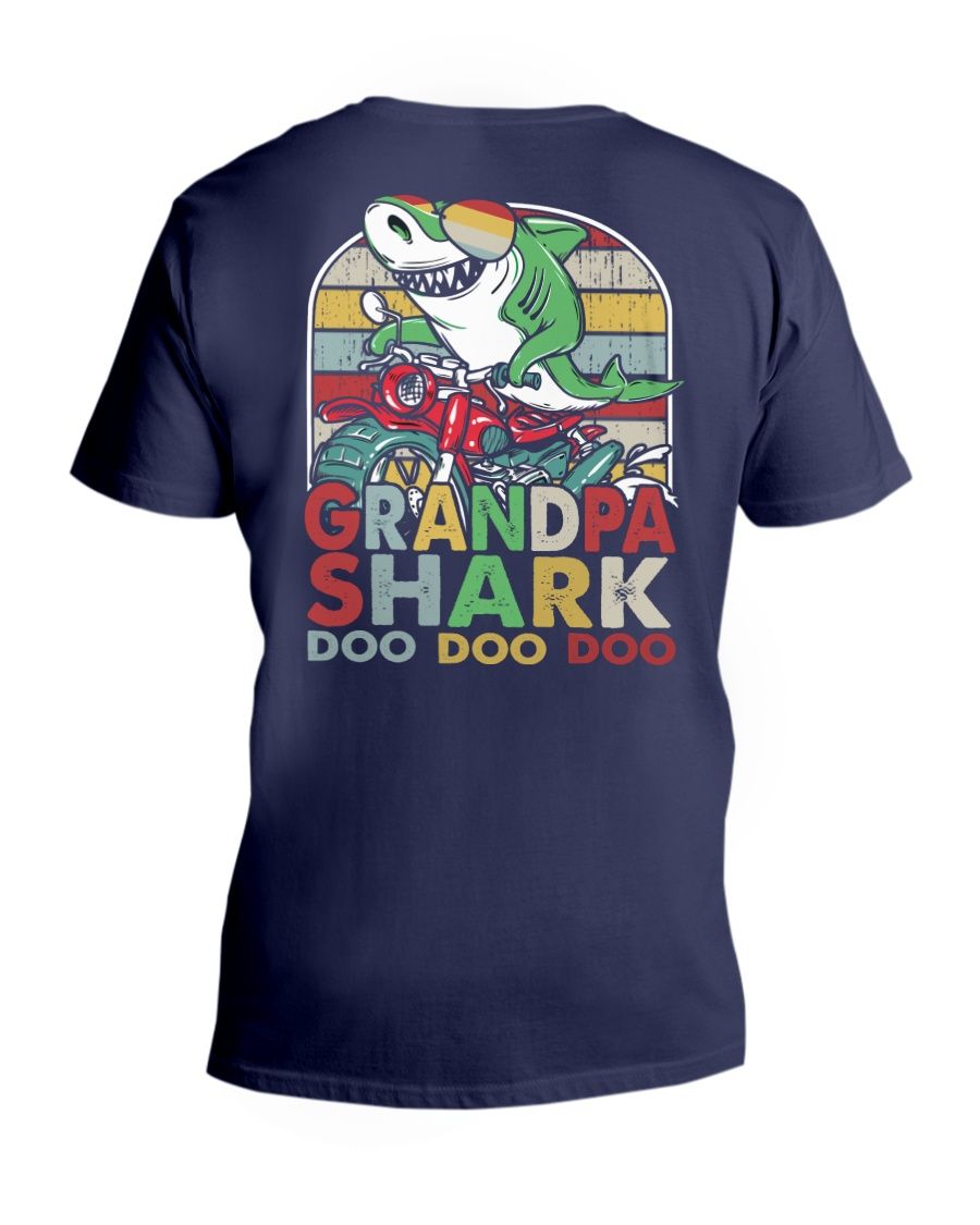 Grandfather Shark Doo Doo Doo Biker Shirt. You can get it in t-shirt, hoodies, long sleeve and tank top. This can be a perfect gift for your daddy and your family member.