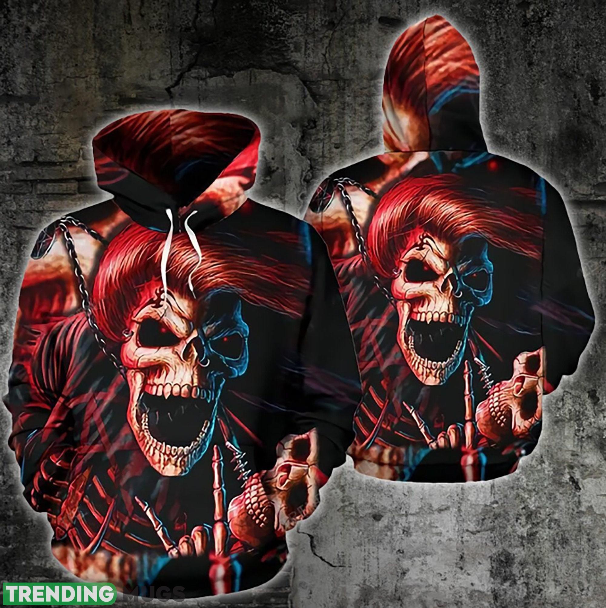 Crafted from high-quality materials, this hoodie is soft, comfortable, and built to last. The 3D all-over print features a striking red skull with flames and a terrifying skeleton, making this hoodie the perfect choice for horror fans and anyone who wants to make a statement with their wardrobe.