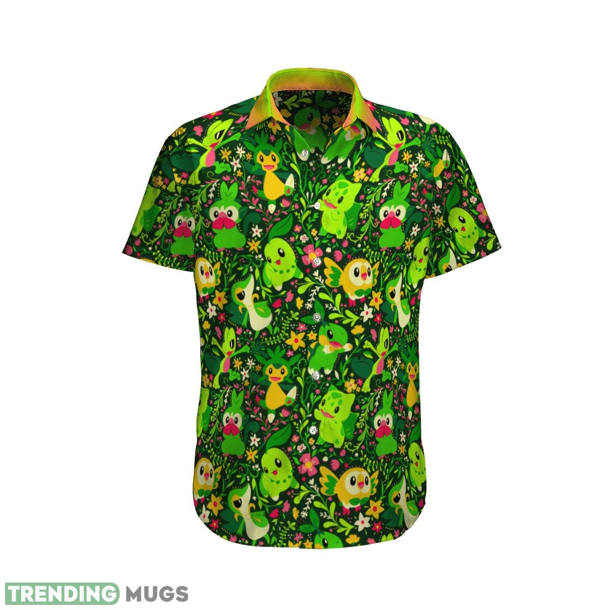 Crafted with the utmost care and attention to detail, our Hawaiian shirt features a playful print showcasing various Grass-type Pokemon, adding a touch of nostalgia and adventure to your summer wardrobe. The lightweight and breathable fabric ensure optimal comfort, allowing you to stay cool and stylish even on the hottest days.